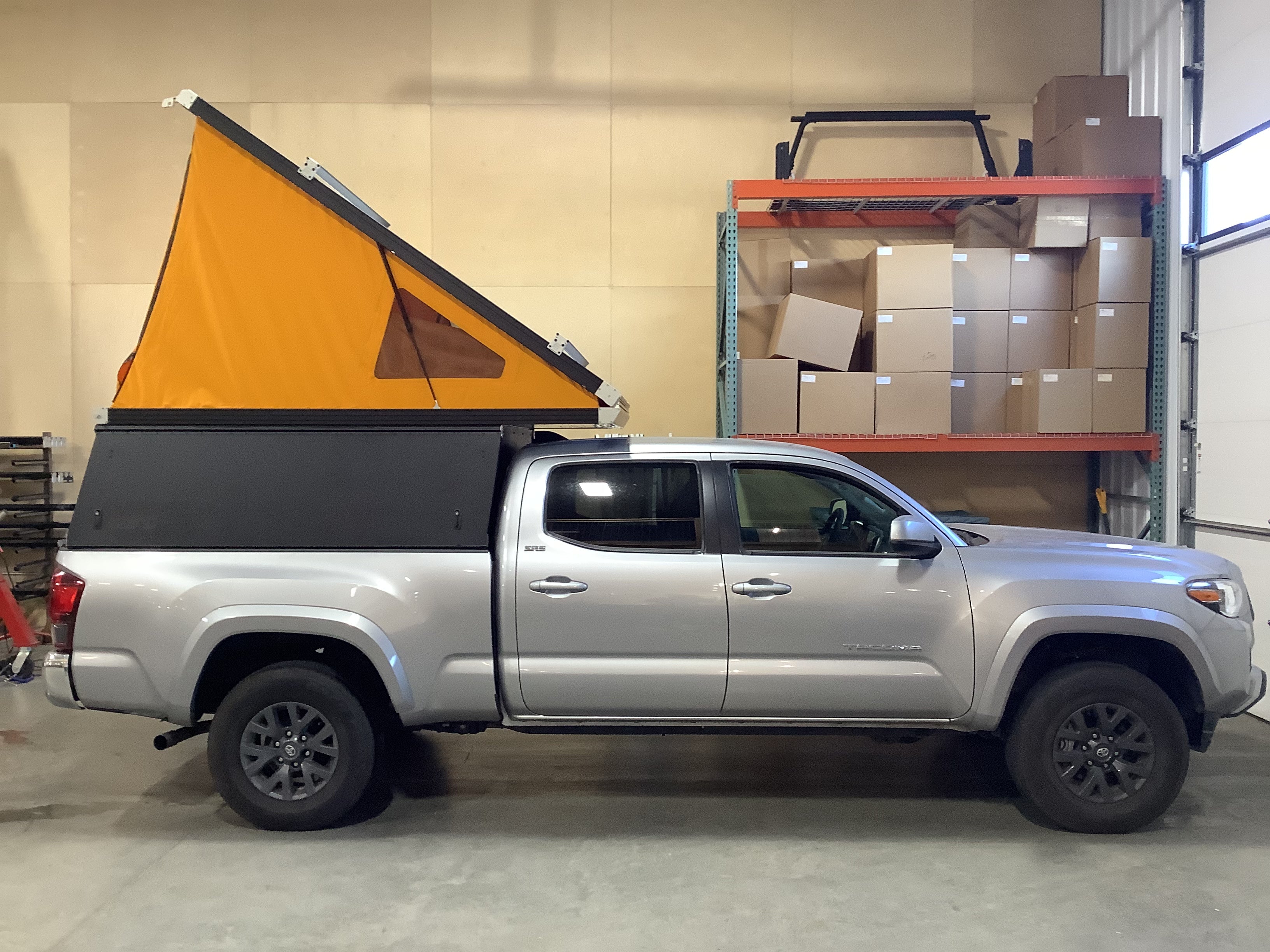 Product: Platform Camper Panel Color: Black GFC Options: Windows, Beef Rack Year: 2021 Make: Toyota Model: Tacoma Cab/Bed: Double Cab 6 Foot Truck Color Silver Wheels: Stock Suspension: Stock Tire: Toyo Open Country 245/75/R16 Mods: All I need is a GFC Instagram Handle: Install Date: 2022-06-24 Location: CO
