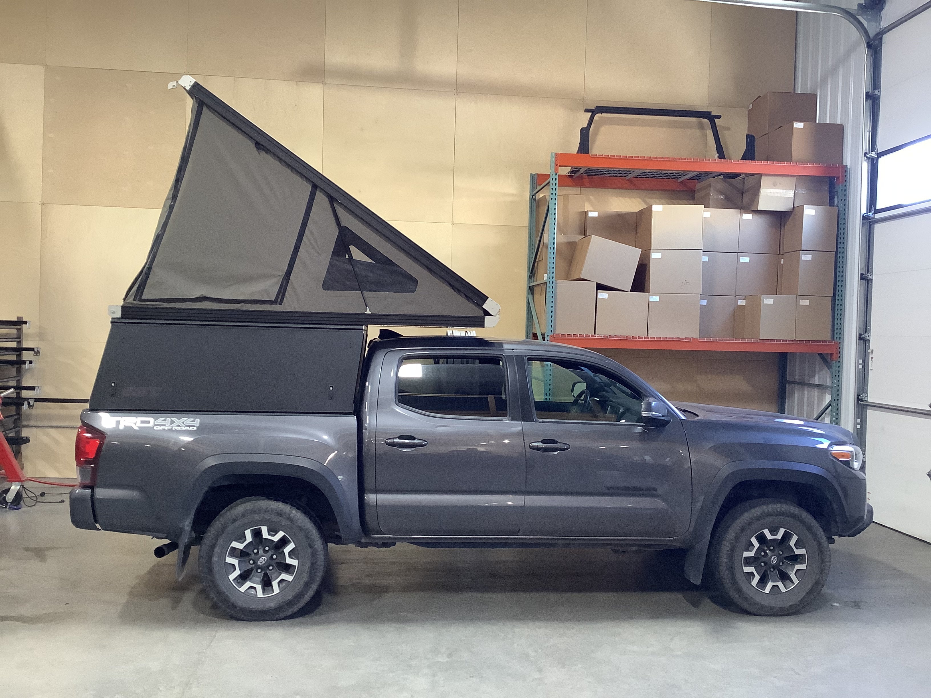 Product: Platform Camper Panel Color: Black GFC Options: Side Door Year: 2019 Make: Toyota Model: Tacoma Cab/Bed: Double Cab 5 foot Truck Color Gray Wheels: Stock Suspension: Stock Tire: Toyo Open Counry 265/70/R16 Mods: All I need is a GFC Instagram Handle:@JayParton Install Date: 2022-07-02 Location: ID