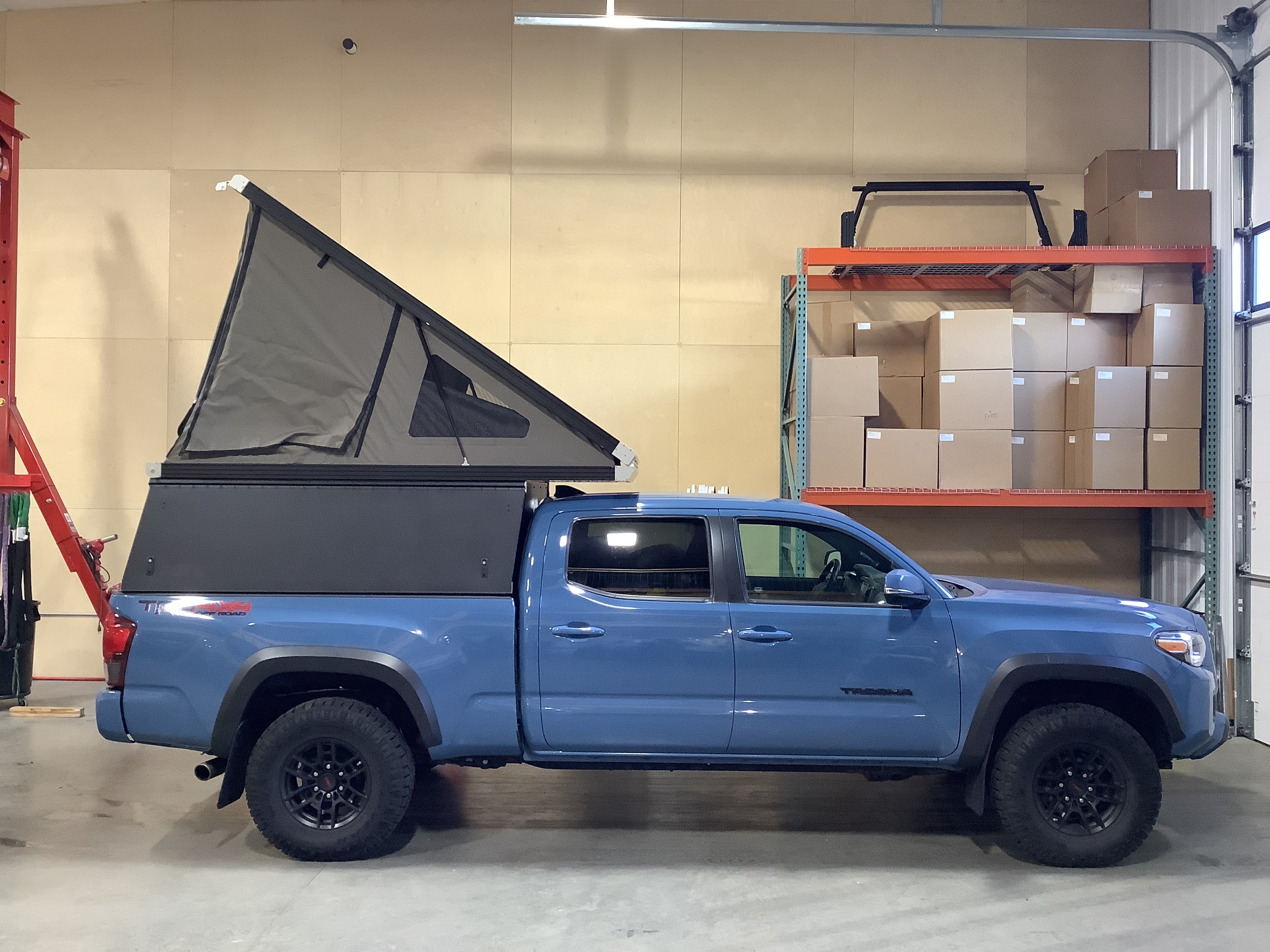 Product: Platform Camper Panel Color: Black GFC Options: Windows, Side Door Year: 2019 Make: Toyota Model: Tacoma Cab/Bed: Double Cab 6 Foot Truck Color Blue Wheels: Stock Suspension: Stock Tire: Goodyear Wrangler S65/70/R16 Mods: All I need is a GFC Instagram Handle: Install Date: 2022-07-30 Location: UT