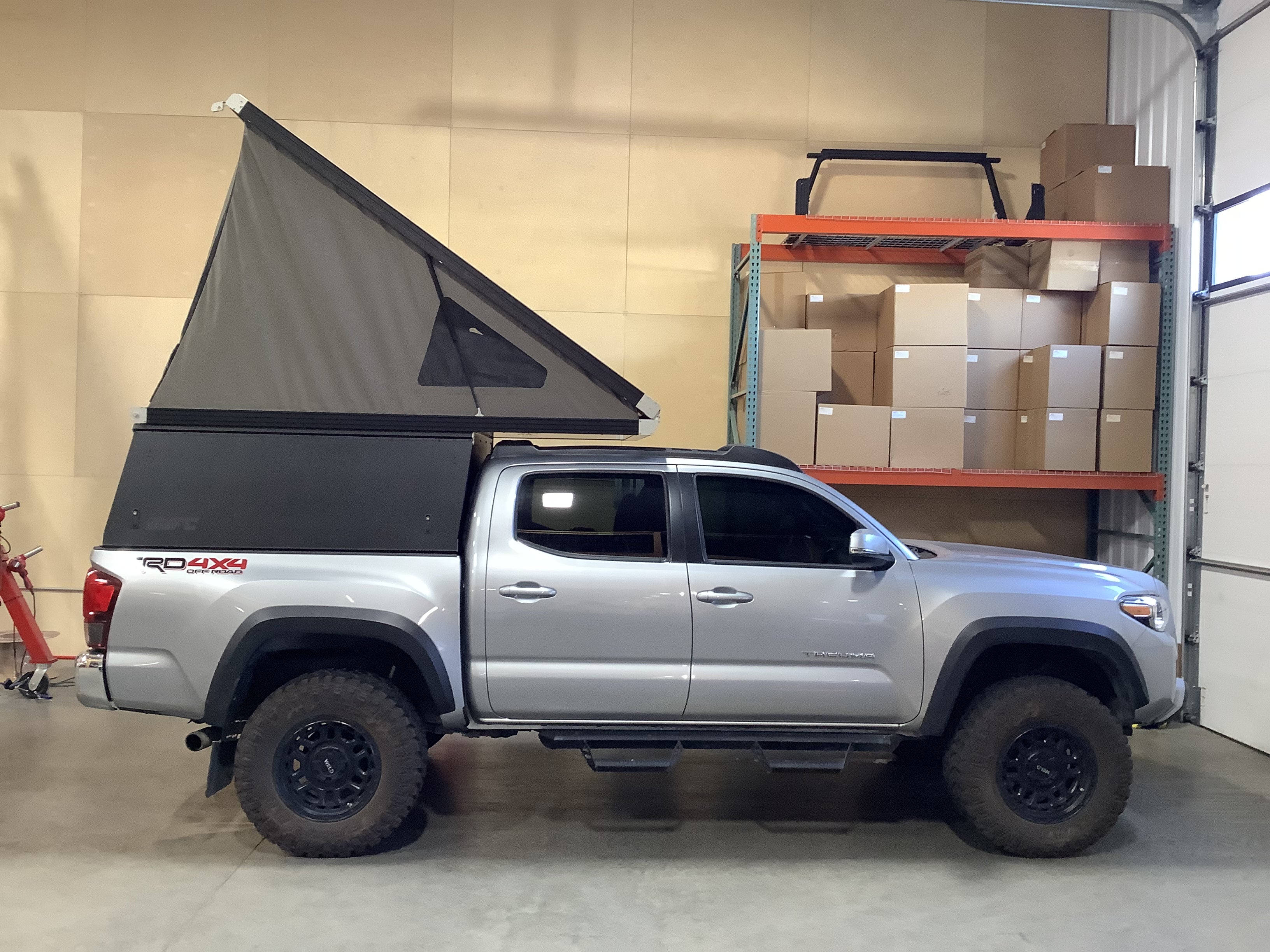This 2019 Toyota Tacoma is outfitted with a GFC Platform Camper with Black panels. Check out more build specs below.