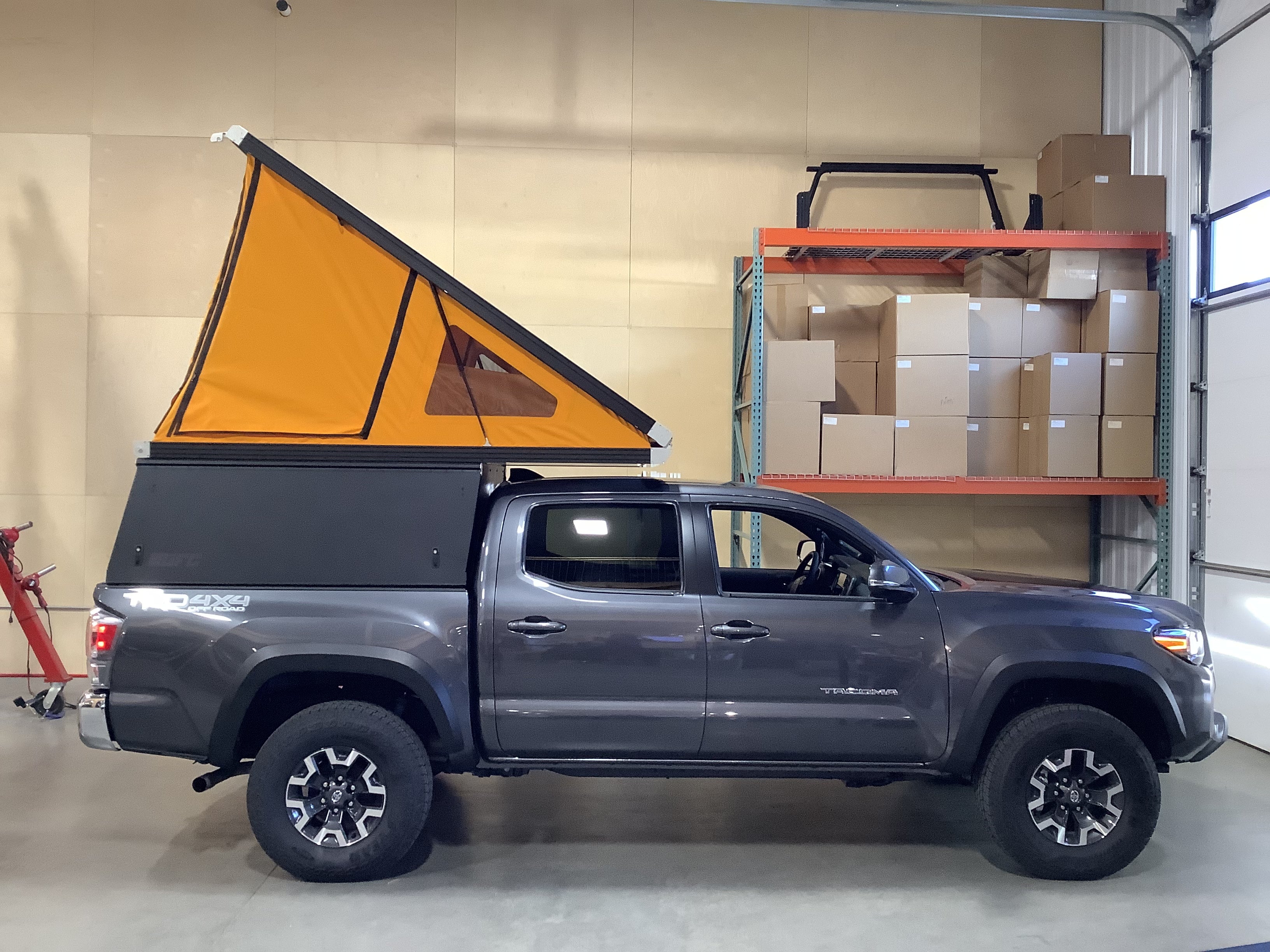 Product: Platform Camper Panel Color: Black GFC Options: Side Door, Windows Year: 2022 Make: Toyota Model: Tacoma Cab/Bed: Double Cab 5 foot Truck Color Gray Wheels: Stock Suspension: Stock Tire: Goodyear Wrangler 265/70/R16 Mods: All I need is a GFC Instagram Handle: @hardrunningtide Install Date: 2022-07-23 Location: UT -> ME
