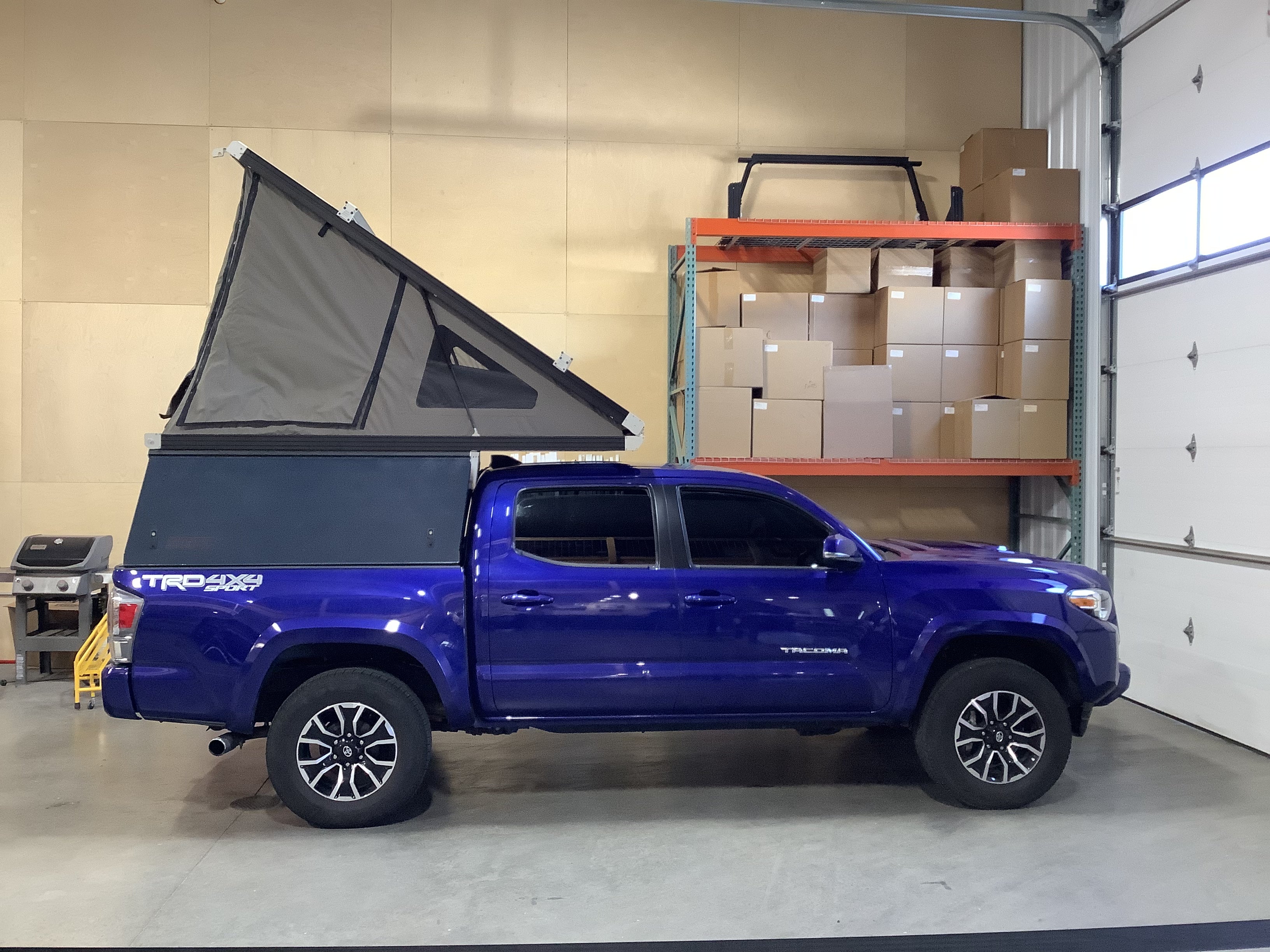 Product: Platform Camper Panel Color: Destroyer Blue GFC Options: Windows, Side Door, Beef Rack Year: 2022 Make: Toyota Model: Tacoma Cab/Bed: Double Cab 5 foot Truck Color Blue Wheels: Stock Suspension: Stock Tire: Toyo Open Country 265/65/R17 Mods: All I need is a GFC Instagram Handle: @AlpineInstitute_SouthWest Install Date: 2022-08-25 Location: NV