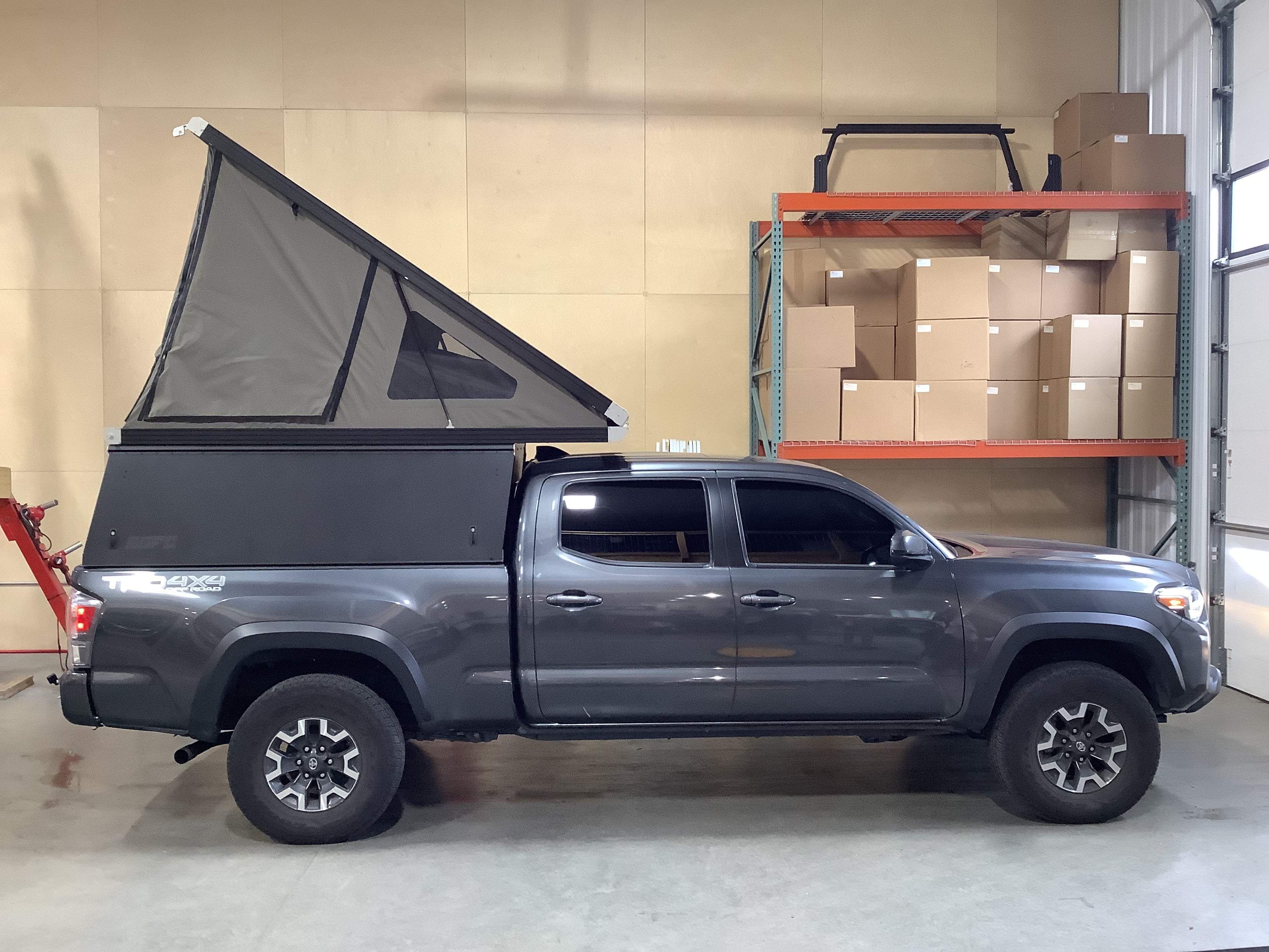 Product: Platform Camper Panel Color: Black GFC Options: Windows, Side Door Year: 2021 Make: Toyota Model: Tacoma Cab/Bed: Double Cab 6 Foot Truck Color Gray Wheels: Stock Suspension: Stock Tire: Goodyear Wrangler 265/70/R16 Mods: All I need is a GFC Instagram Handle: Install Date: 2022-07-17 Location: WA