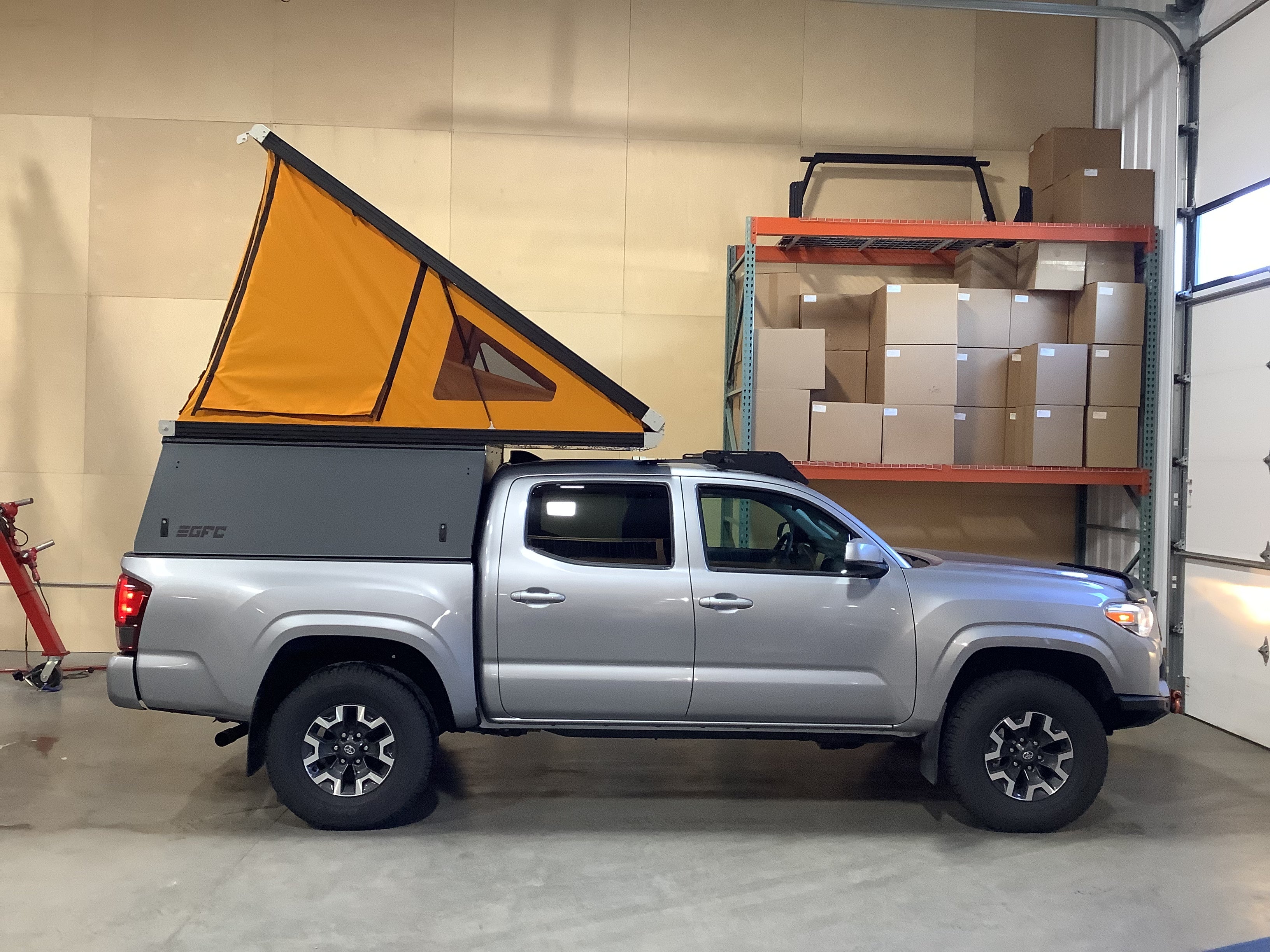 This 2021 Toyota Tacoma is outfitted with a GFC Platform Camper with Battleship Gray panels. Check out more build specs below.