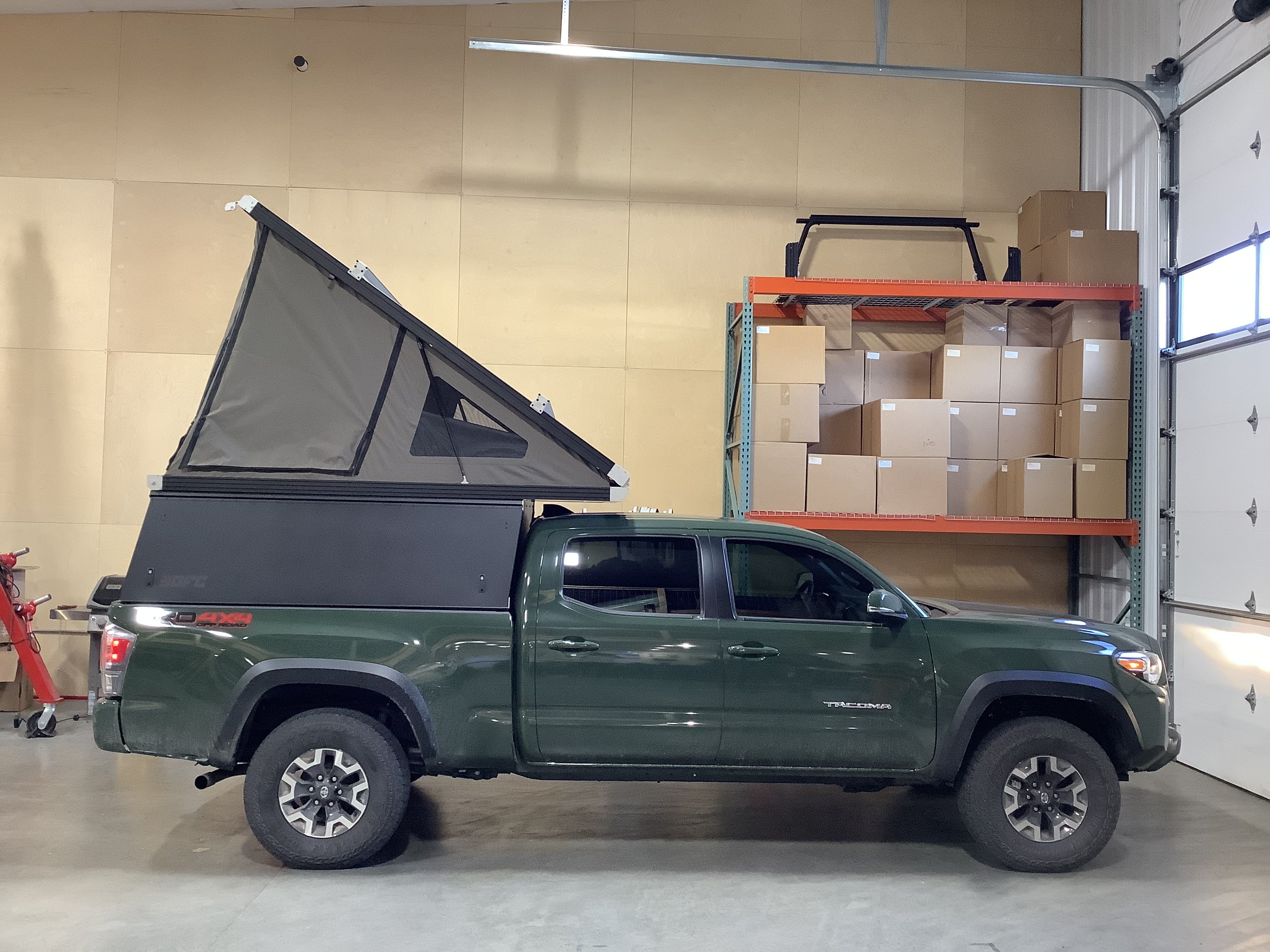 Product: Platform Camper Panel Color: Black GFC Options: Beef Rack, Side Door Year: 2022 Make: Toyota Model: Tacoma Cab/Bed: Double Cab 6 Foot Truck Color Green Wheels: Stock Suspension: Stock Tire: Goodyear Wrangler 265/70/R16 Mods: All I need is a GFC Instagram Handle: @Magic_Brownies Install Date: 2022-08-25 Location: Oregon