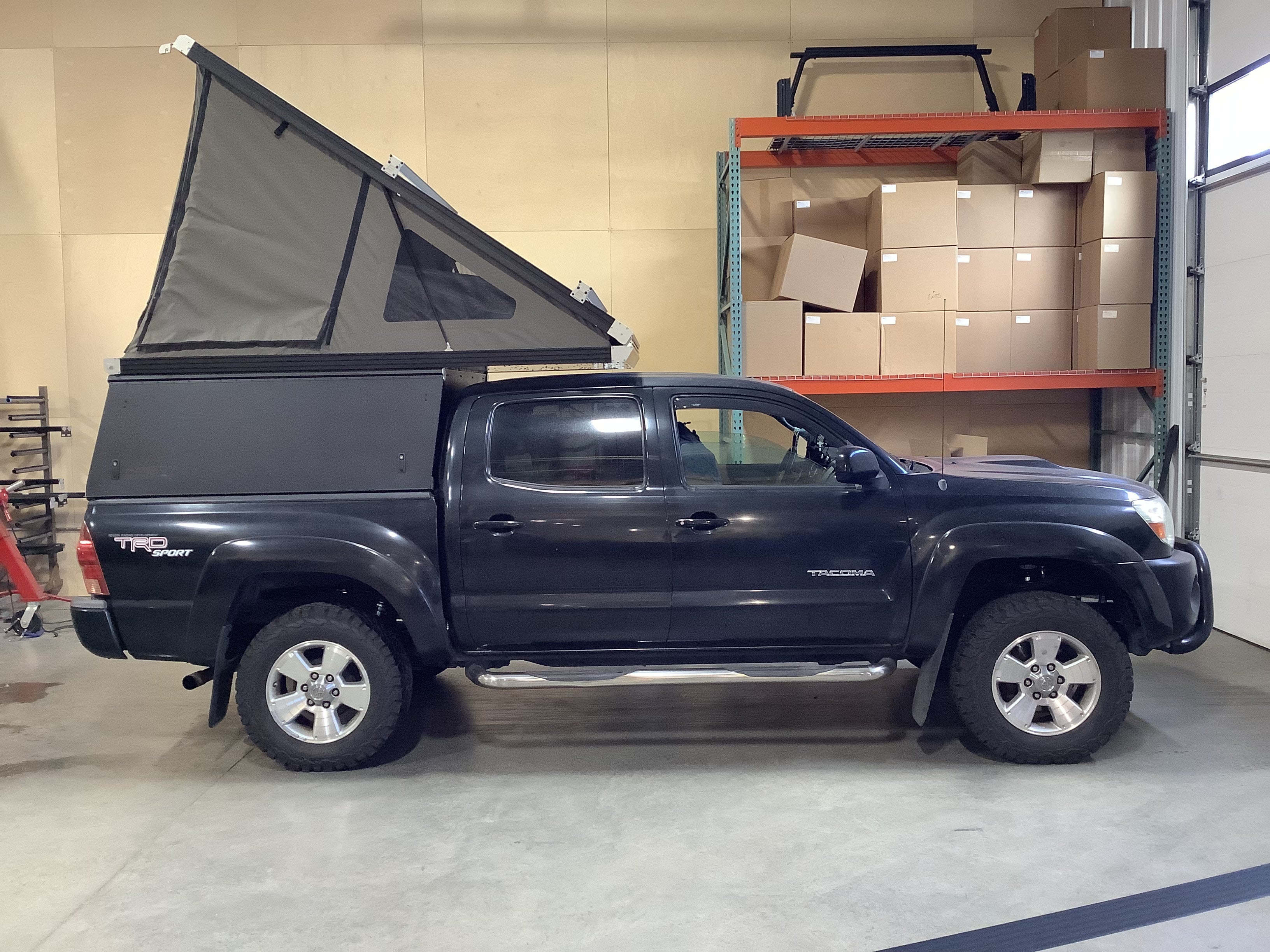 Product: Platform Camper Panel Color: Black GFC Options: Windows, Side Door, Beef Rack Year: 2007 Make: Toyota Model: Tacoma Cab/Bed: Double Cab 5 foot Truck Color Black Wheels: Stock Suspension: Stock Tire: BFG KO2 265/70/R16 Mods: All I need is a GFC Instagram Handle: Install Date: 2022-07-03 Location: CA
