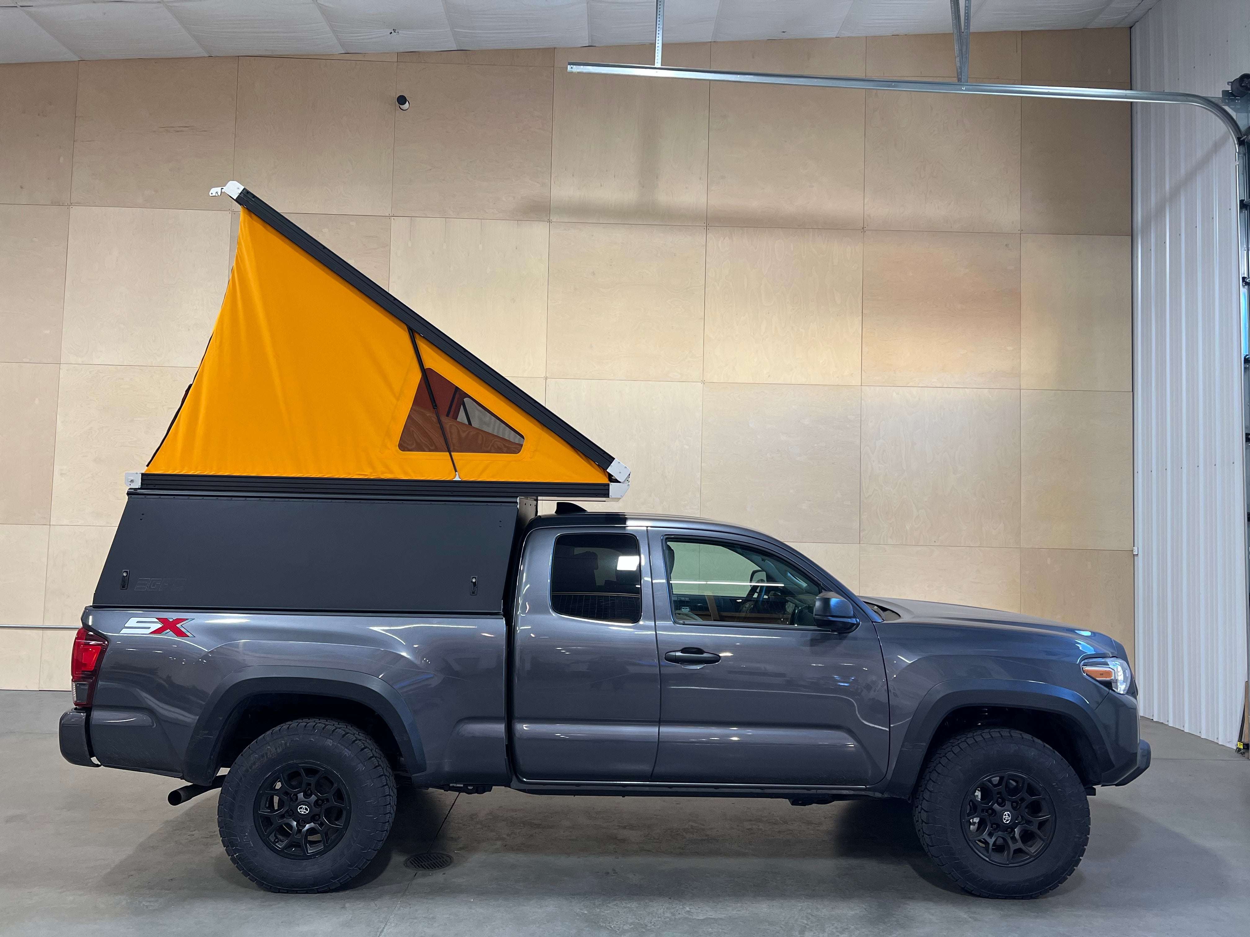 This 2022 Toyota Tacoma is outfitted with a GFC Platform Camper with Black panels. Check out more build specs below.