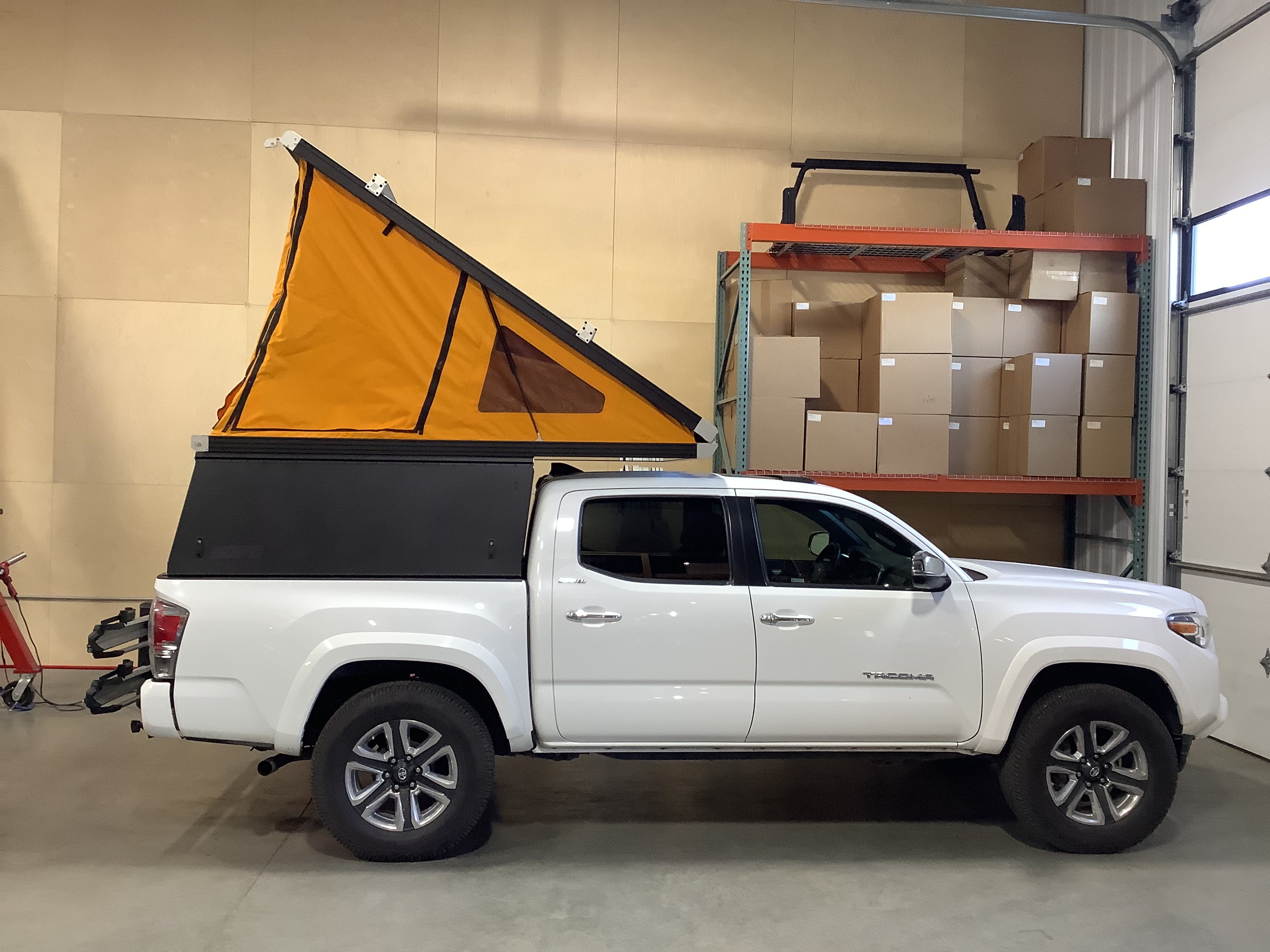 Product: Platform Camper Panel Color: Black GFC Options: Windows, Side Door, Beef Rack Year: 2017 Make: Toyota Model: Tacoma Cab/Bed: Double Cab 5 foot Truck Color White Wheels: Stock Suspension: Stock Tire: Michelin LTX 275/65/R18 Mods: All I need is a GFC Instagram Handle: Install Date: 2022-07-22 Location: MT