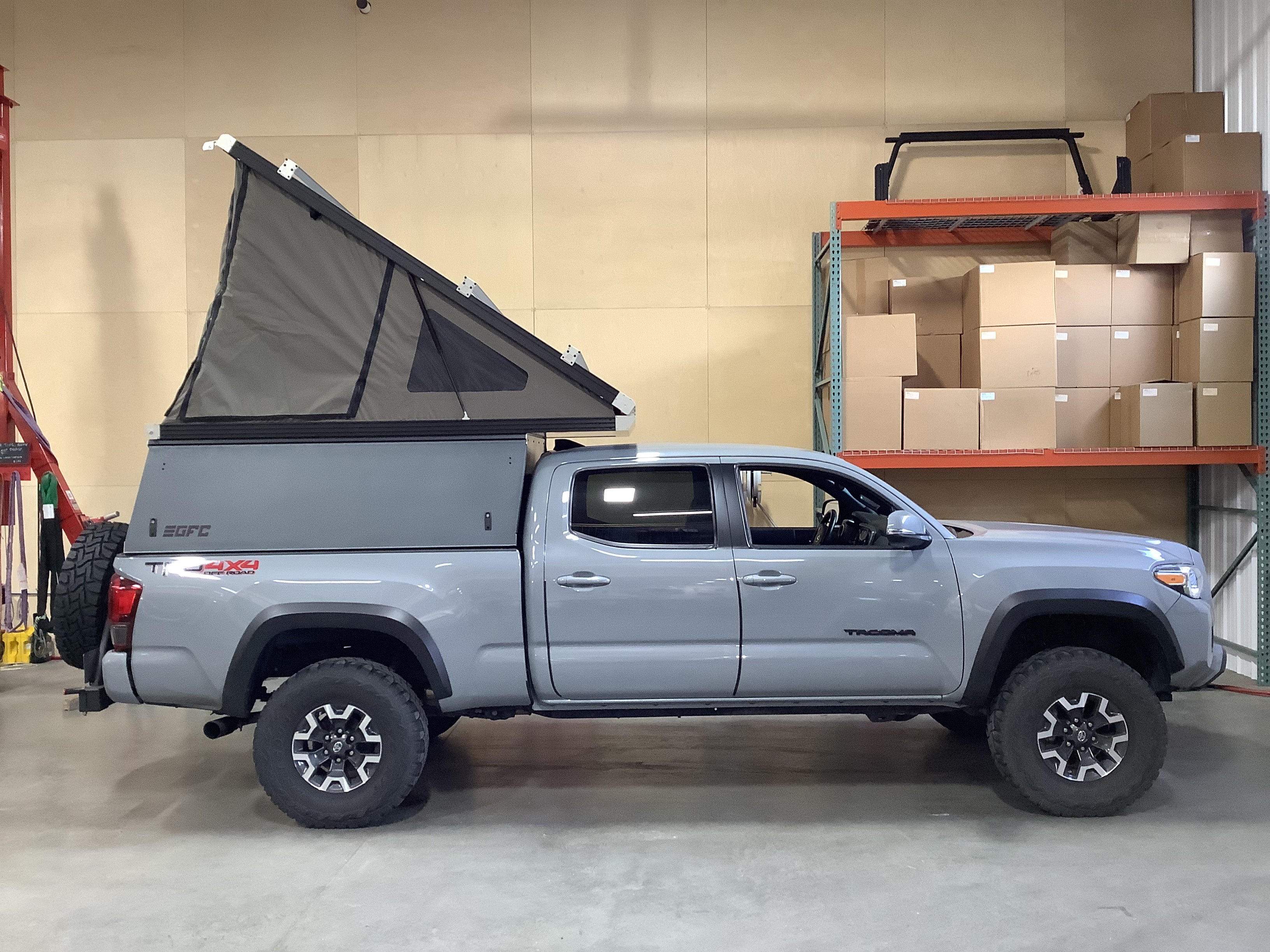 This 2019 Toyota Tacoma is outfitted with a GFC Platform Camper with Battleship Gray panels. Check out more build specs below.