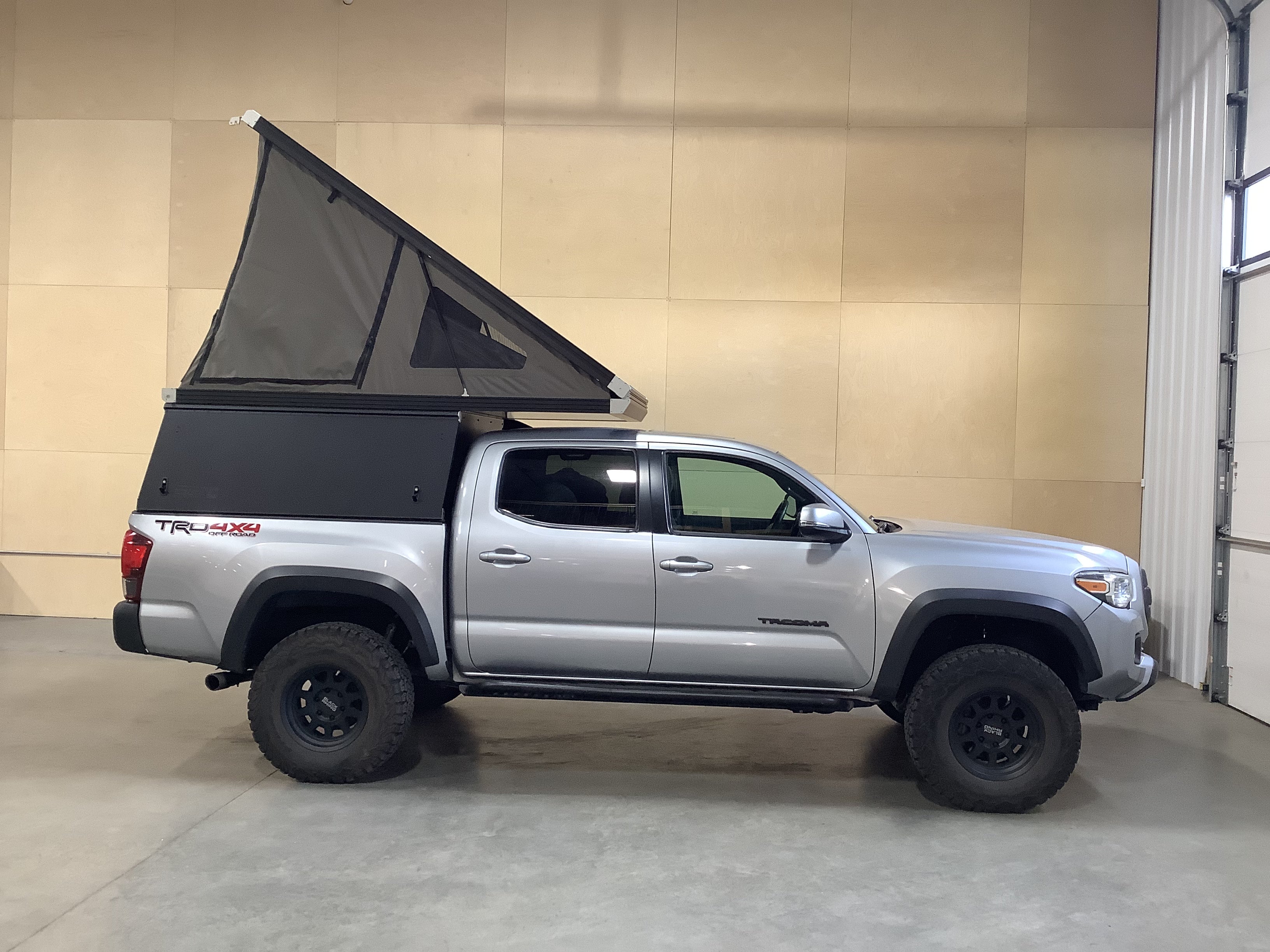 Product: Platform Camper Panel Color: Black GFC Options: Year: 2018 Make: Toyota Model: Tacoma Cab/Bed: Double Cab 5 foot Truck Color Silver Wheels: Black Rhino Suspension: Bilstein Tire: BFG KO2 265/75/R16 Mods: All I need is a GFC Instagram Handle: Install Date: 2022-09-29 Location: Denver