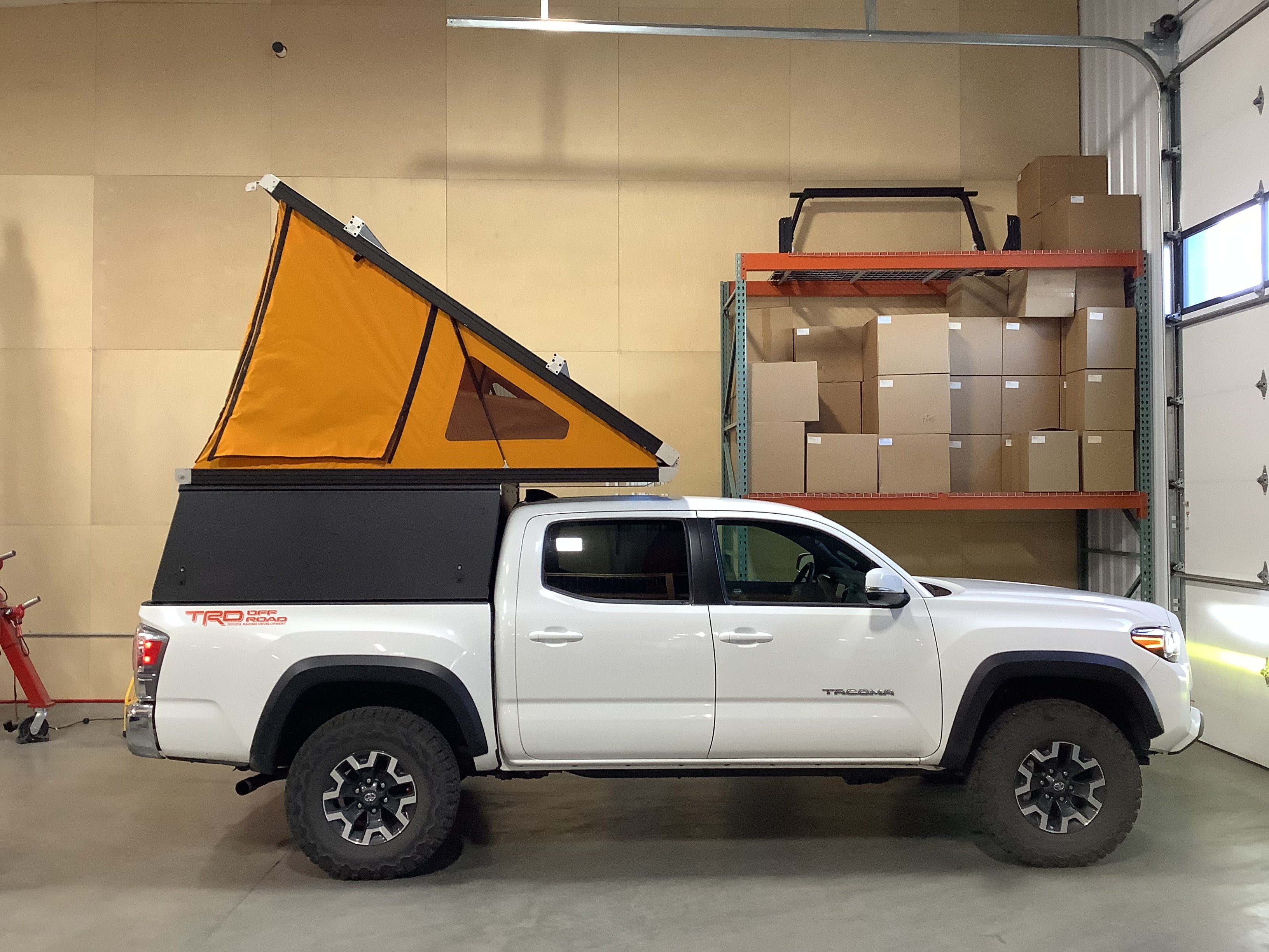 Product: Platform Camper Panel Color: Black GFC Options: Beef Rack, Windows, Side Door Year: 2021 Make: Toyota Model: Tacoma Cab/Bed: Double Cab 5 foot Truck Color White Wheels: Stock Suspension: Stock Tire: BFG KO2 265/75/R16 Mods: All I need is a GFC Instagram Handle: Install Date: 2022-08-13 Location: WA