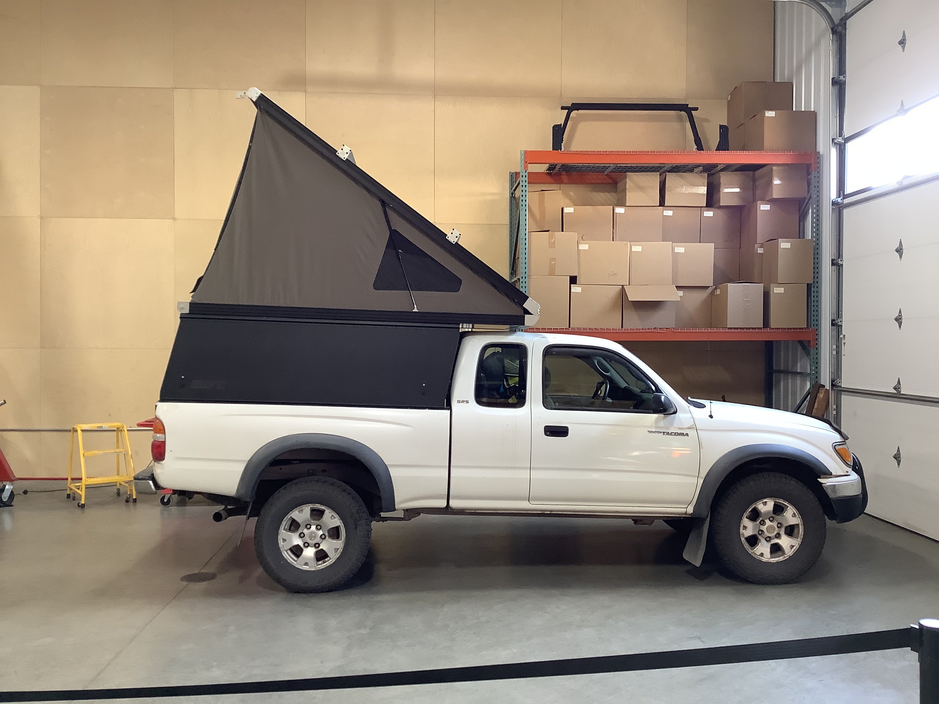 Product: Platform Camper Panel Color: Black GFC Options: Windows, Beef Rack Year: 2004 Make: Toyota Model: Tacoma Cab/Bed: Access Cab 6 Foot Truck Color White Wheels: Stock Suspension: Stock Tire: Hercules Terra Trac AT 265/70/R16 Mods: All I need is a GFC Instagram Handle: Install Date: 2022-09-11 Location: CO