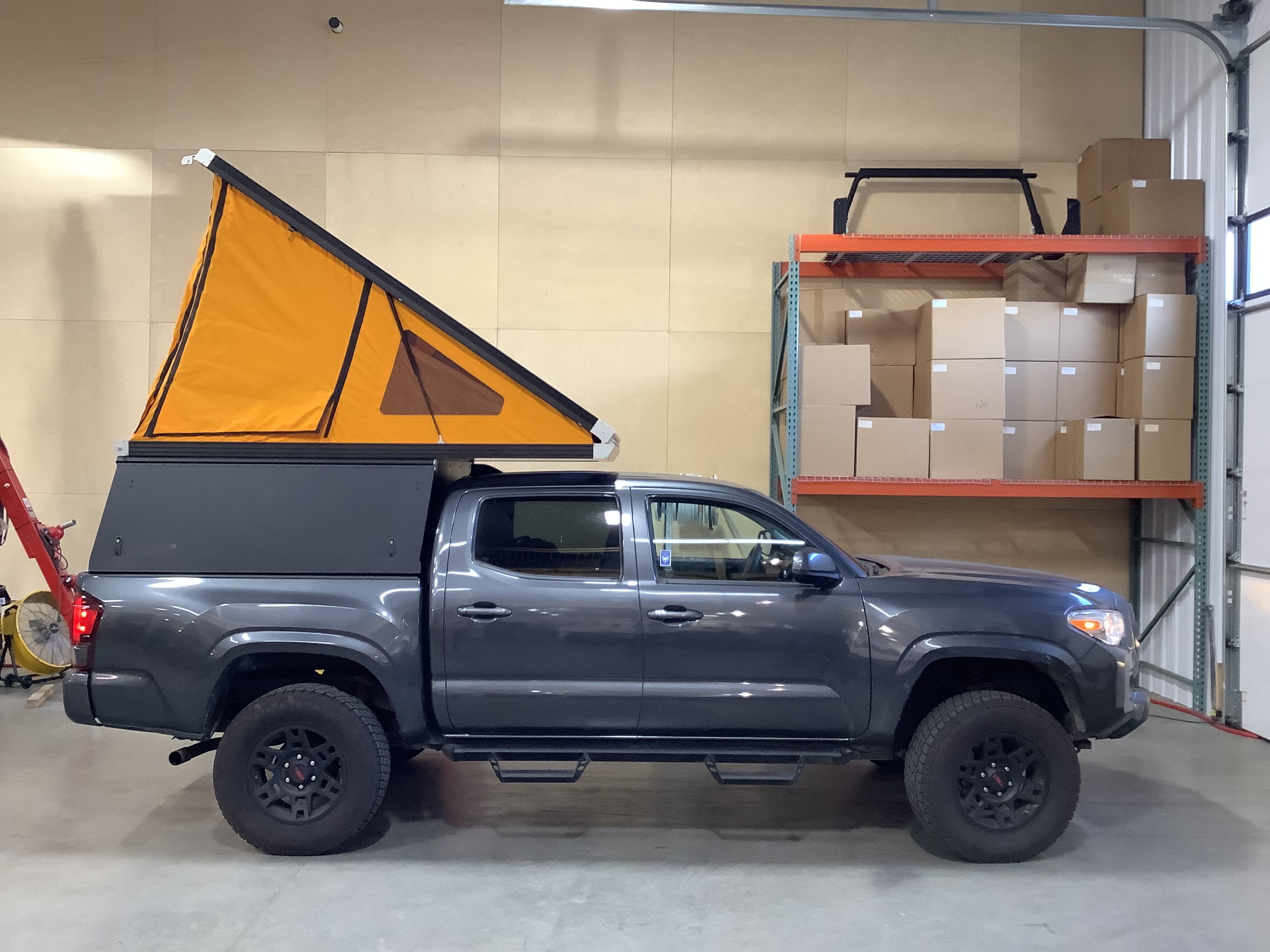 Product: Platform Camper Panel Color: Black GFC Options: Side Door Year: 2021 Make: Toyota Model: Tacoma Cab/Bed: Double Cab 5 foot Truck Color Gray Wheels: Stock Suspension: Bilstein Tire: Nitto Terra Grappler 265/70/R17 Mods: All I need is a GFC Instagram Handle: Install Date: 2022-08-19 Location: WA