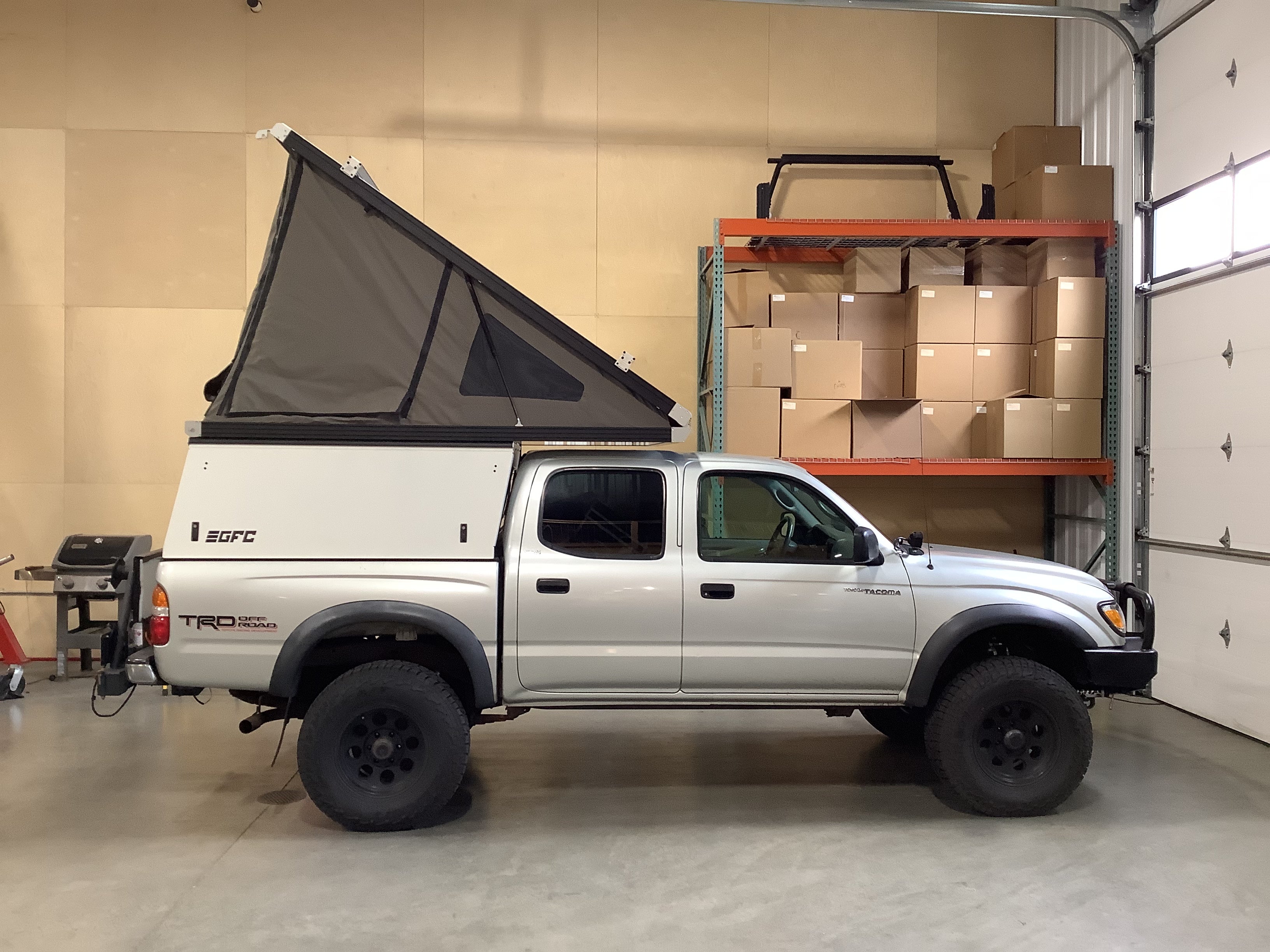 This 2004 Toyota Tacoma is outfitted with a GFC Platform Camper with White panels. Check out more build specs below.