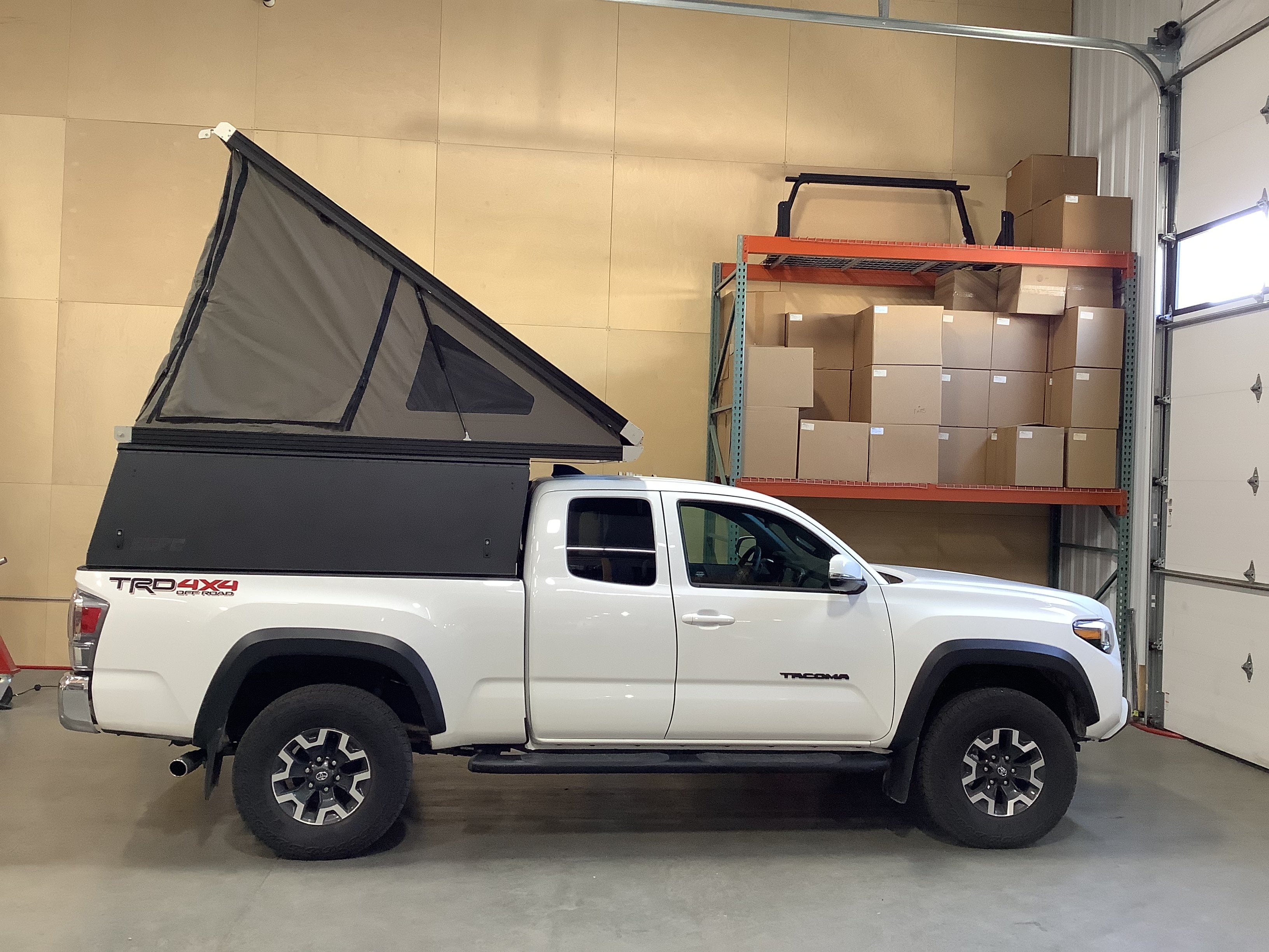 Product: Platform Camper Panel Color: Black GFC Options: Windows, Side Door Year: 2022 Make: Toyota Model: Tacoma Cab/Bed: Access Cab 6 Foot Truck Color White Wheels: Stock Suspension: Stock Tire: Goodyear Wranger 265/70/R16 Mods: All I need is a GFC Instagram Handle: Install Date: 2022-08-19 Location: UT