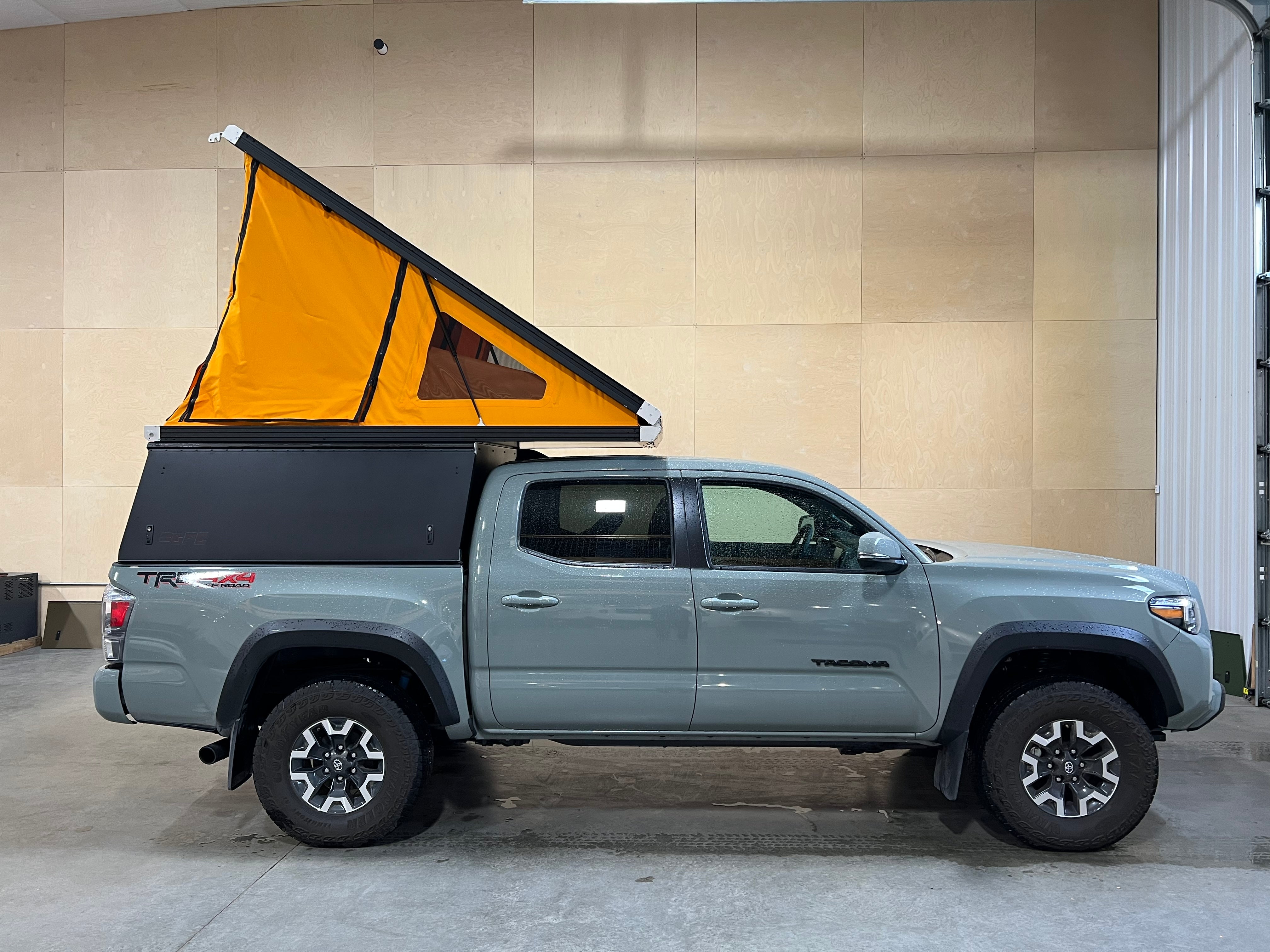 This 2022 Toyota Tacoma is outfitted with a GFC Platform Camper with Black panels. Check out more build specs below.