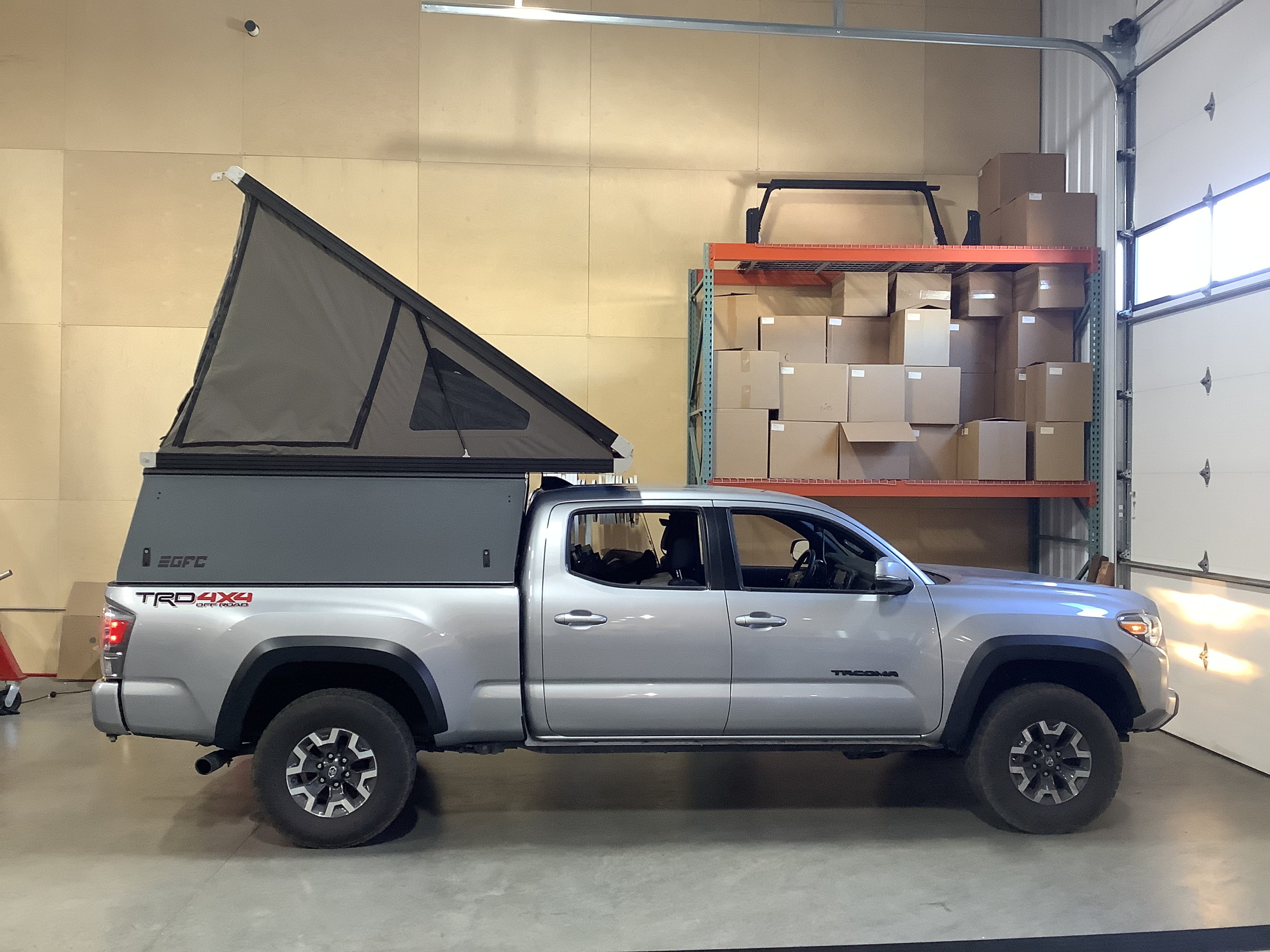 Product: Platform Camper Panel Color: Battleship Gray GFC Options: Windows, Side Door Year: 2021 Make: Toyota Model: Tacoma Cab/Bed: Double Cab 6 Foot Truck Color Silver Wheels: Stock Suspension: Stock Tire: Toyo Open Country AT3 265/70/R16 Mods: All I need is a GFC Instagram Handle: Install Date: 2022-09-10 Location: CA