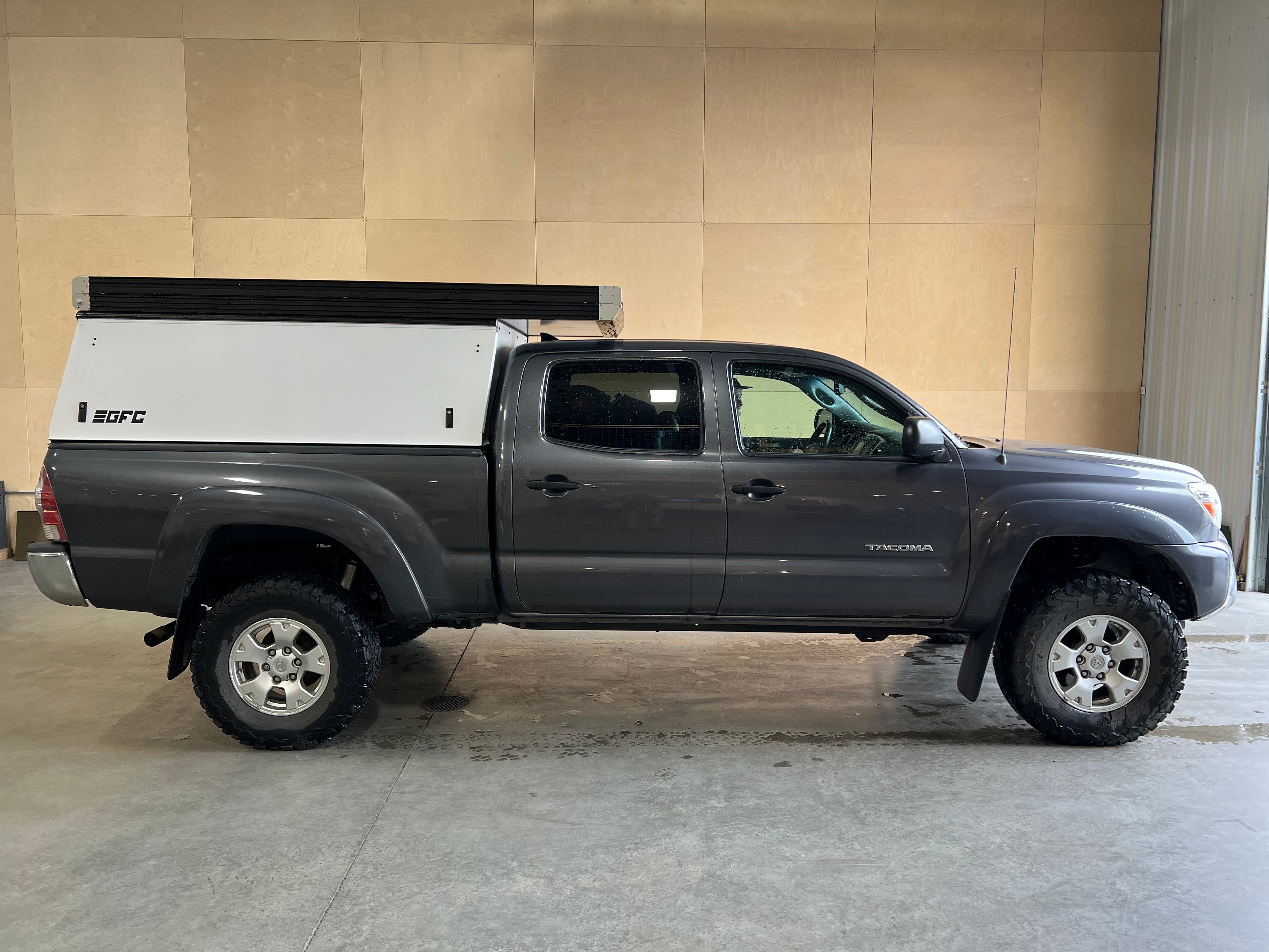 Product: Platform Camper Panel Color: White GFC Options: Side Door, Windows Year: 2015 Make: Toyota Model: Tacoma Cab/Bed: Double Cab 6 Foot Truck Color Gray Wheels: Stock Suspension: Rough Country Tire: BFG Ko2 265/75/R16 Mods: All I need is a GFC Instagram Handle:None Install Date: 2022-09-30 Location: BC