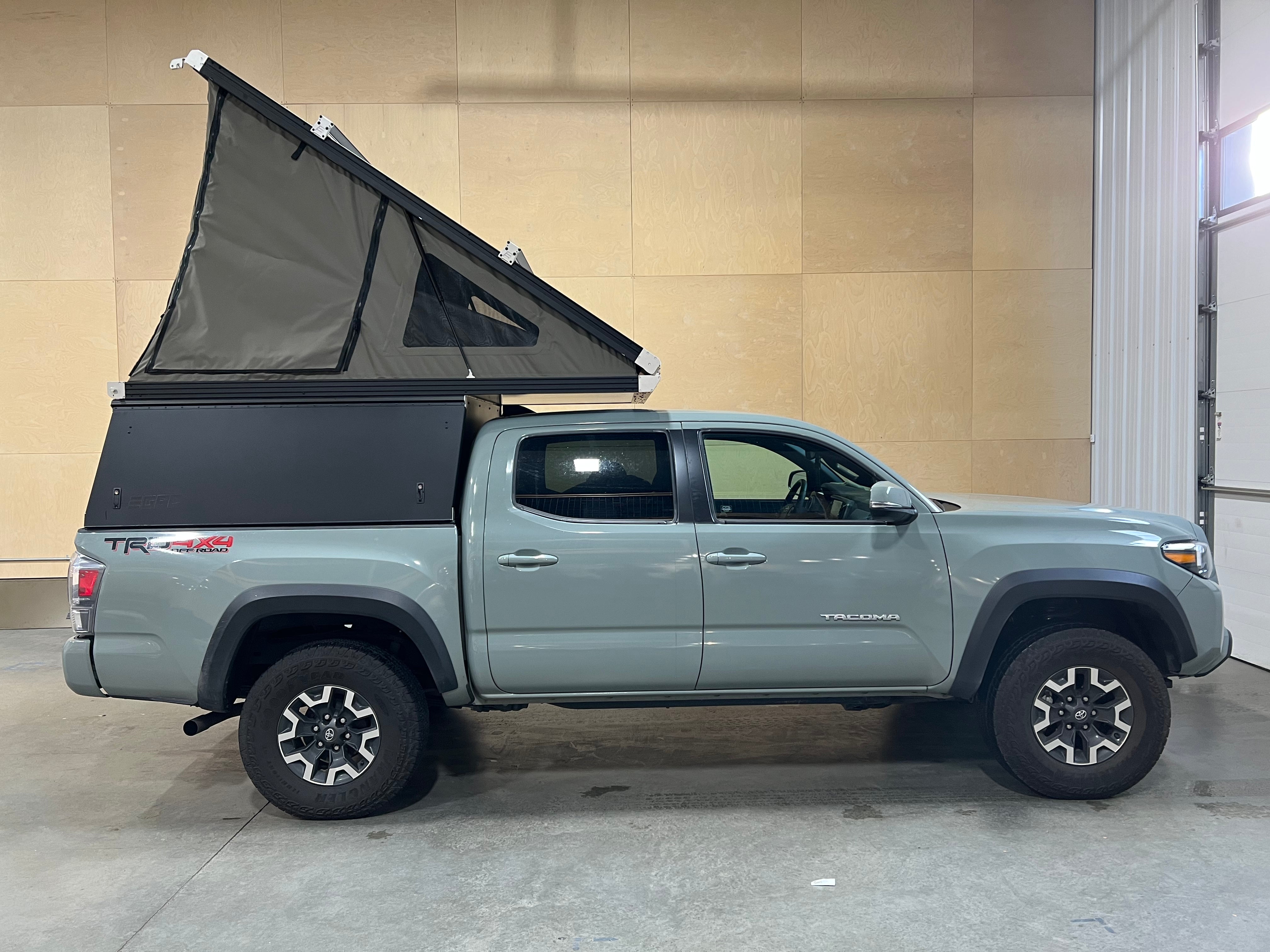 Product: Platform Camper Panel Color: Black GFC Options: Side Door, Windows Year: 2022 Make: Toyota Model: Tacoma Cab/Bed: Double Cab 5 foot Truck Color Gray Wheels: Stock Suspension: Stock Tire: Goodyear Wrangler 265/70/R16 Mods: All I need is a GFC Instagram Handle: Install Date: 2022-09-30 Location: Colorado