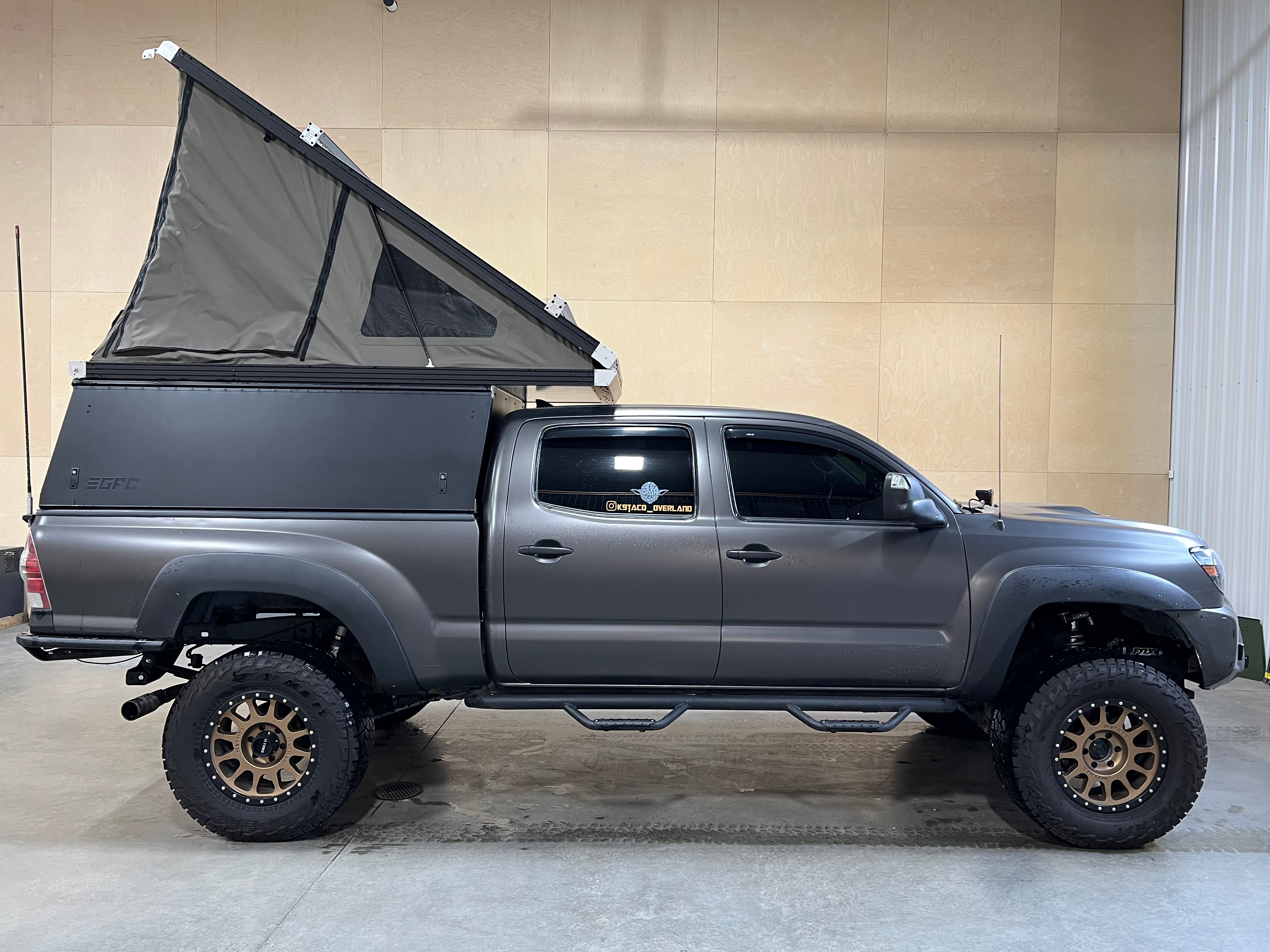 This 2014 Toyota Tacoma is outfitted with a GFC Platform Camper with Black panels. Check out more build specs below.