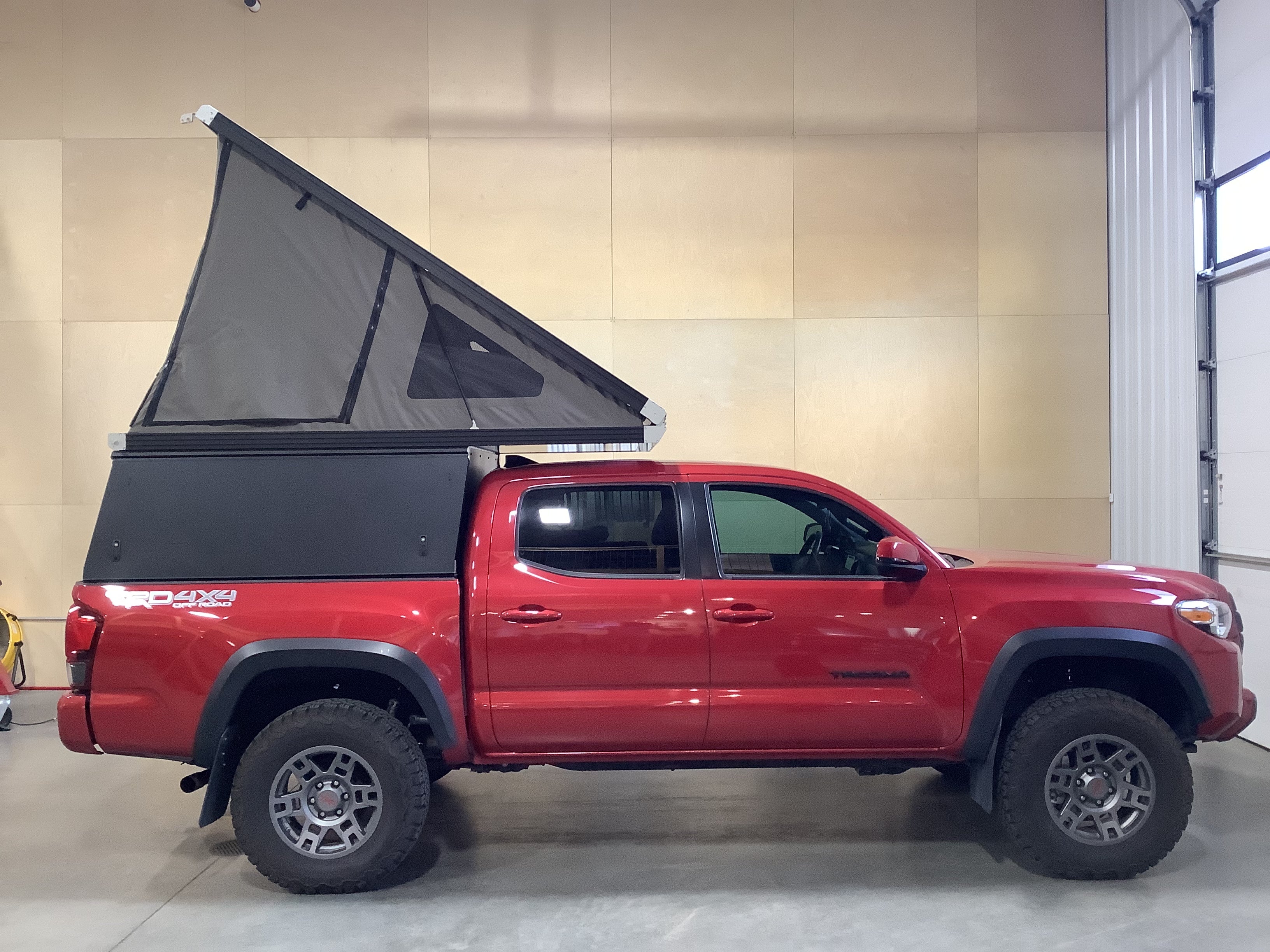 This 2019 Toyota Tacoma is outfitted with a GFC Platform Camper with Black panels. Check out more build specs below.