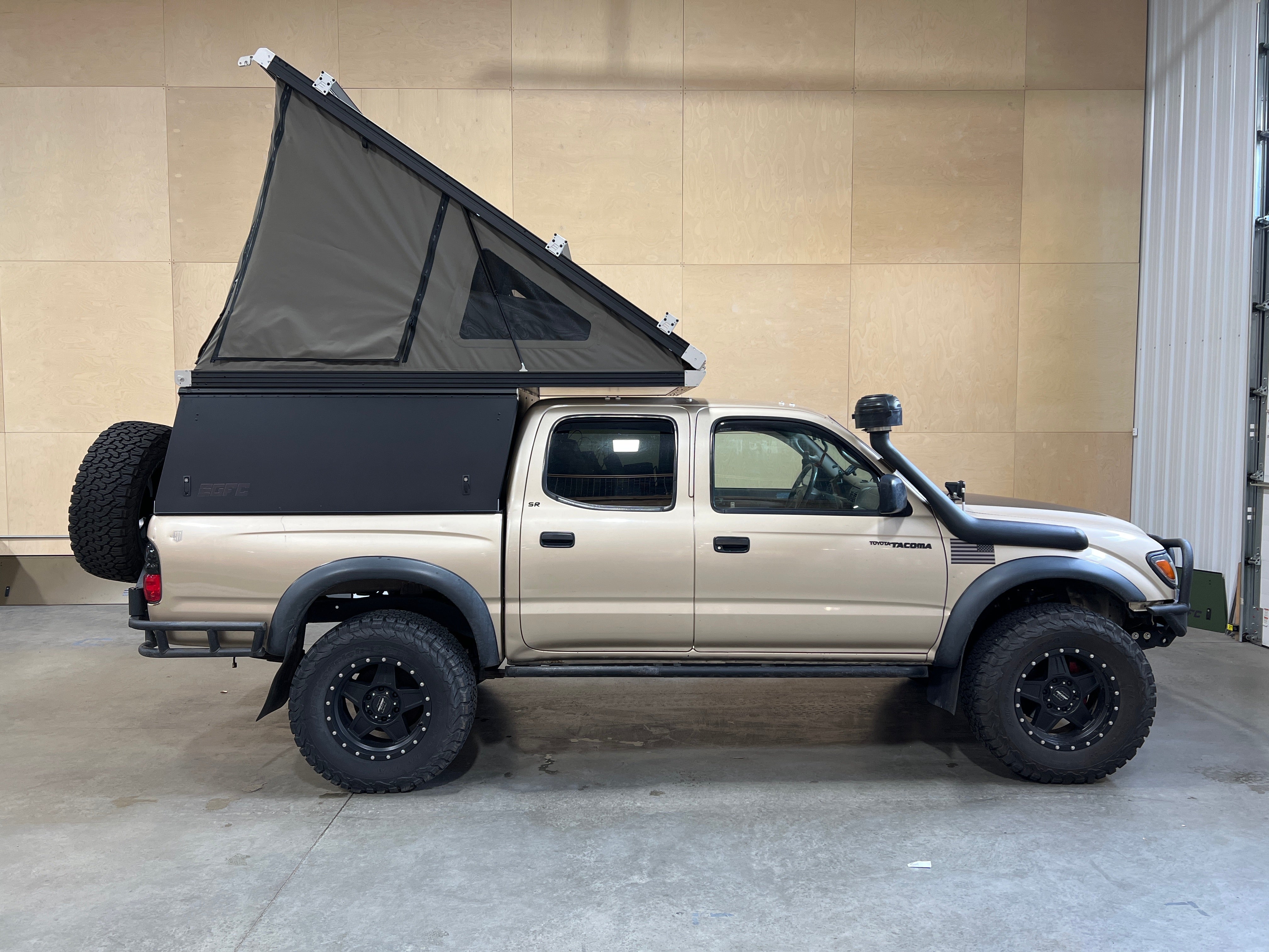 This 2003 Toyota Tacoma is outfitted with a GFC Platform Camper with Black panels. Check out more build specs below.