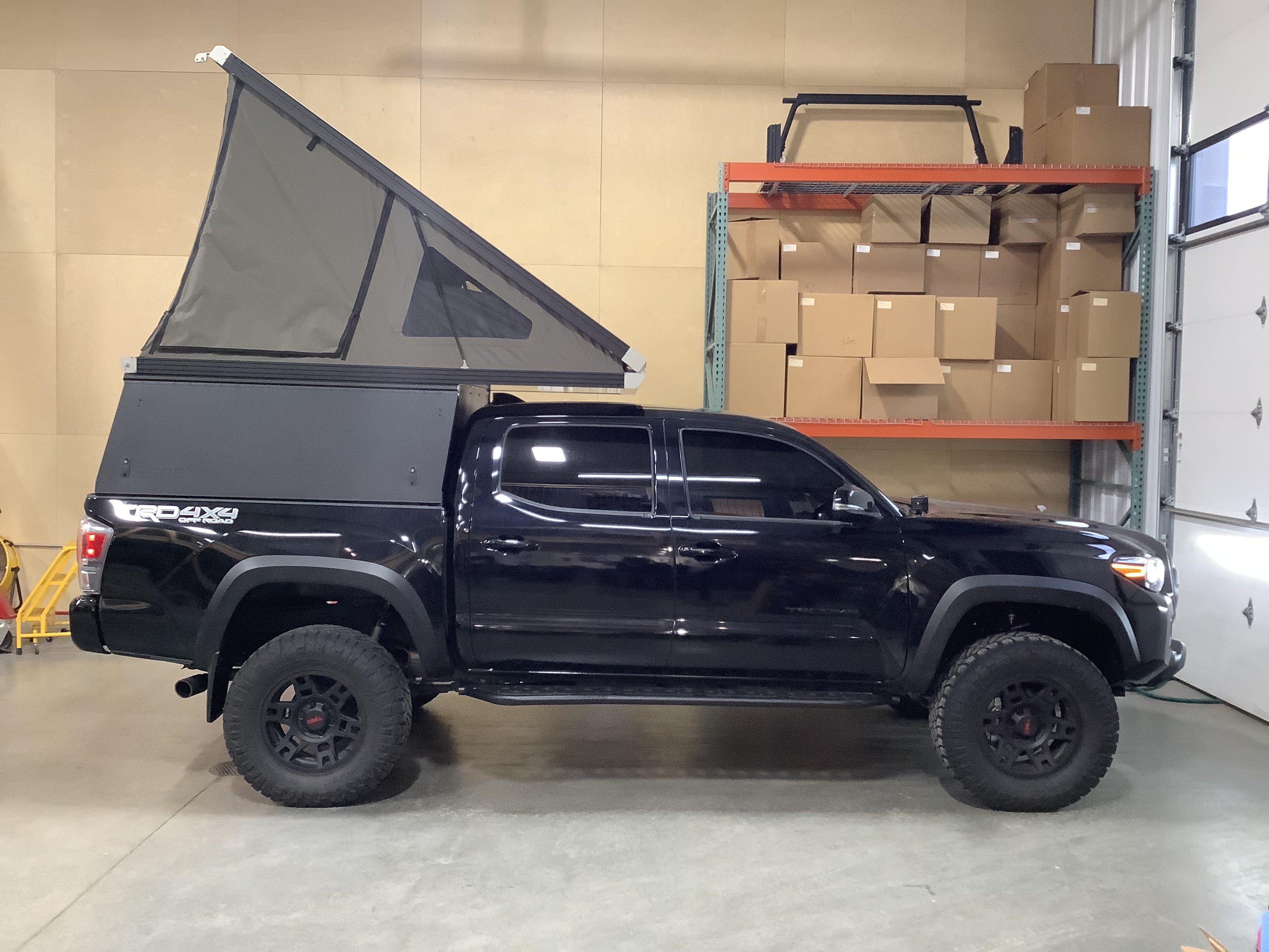This 2022 Toyota Tacoma is outfitted with a GFC Platform Camper with Black panels. Check out more build specs below.