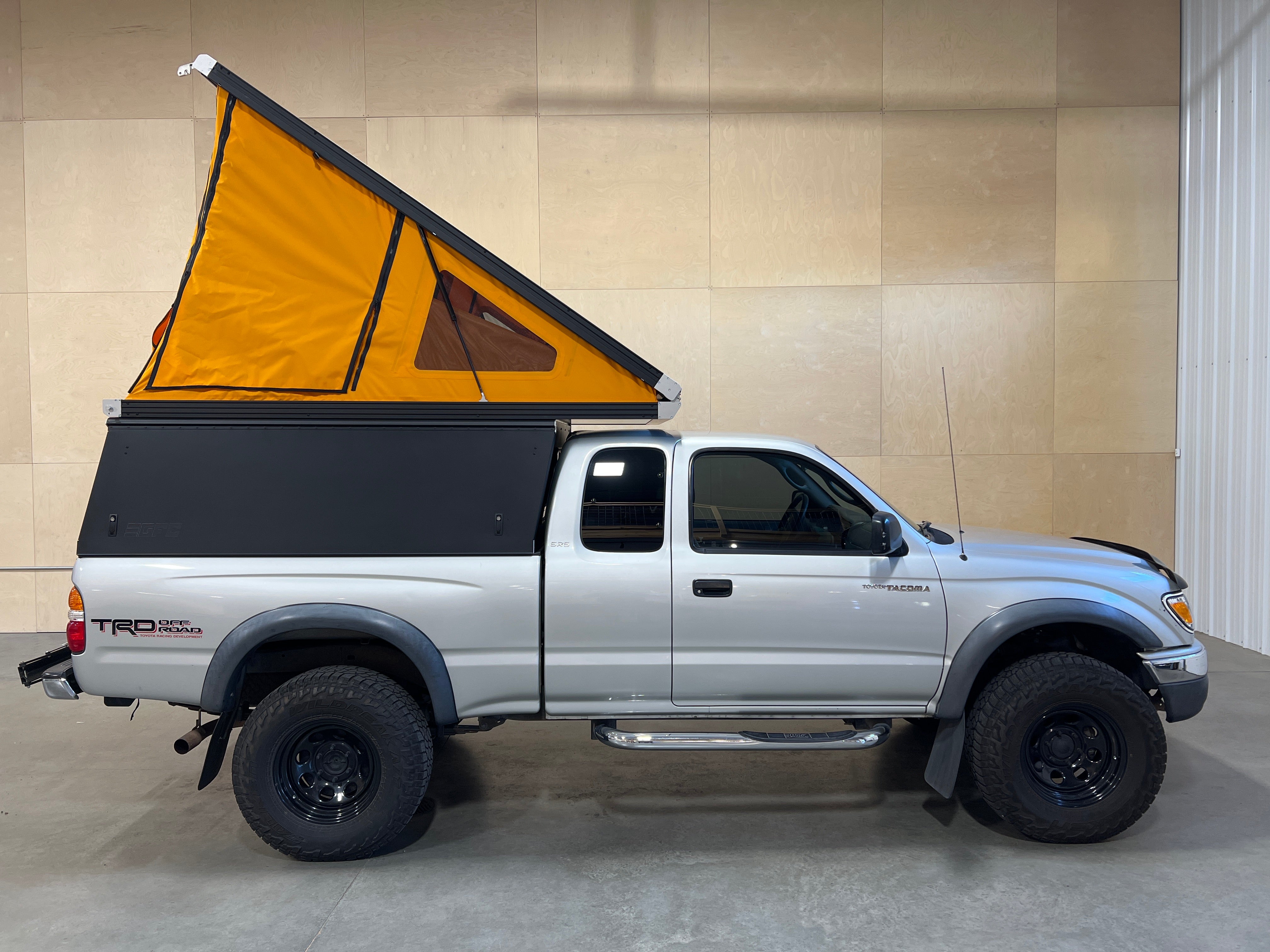 This 2002 Toyota Tacoma is outfitted with a GFC Platform Camper with Black panels. Check out more build specs below.