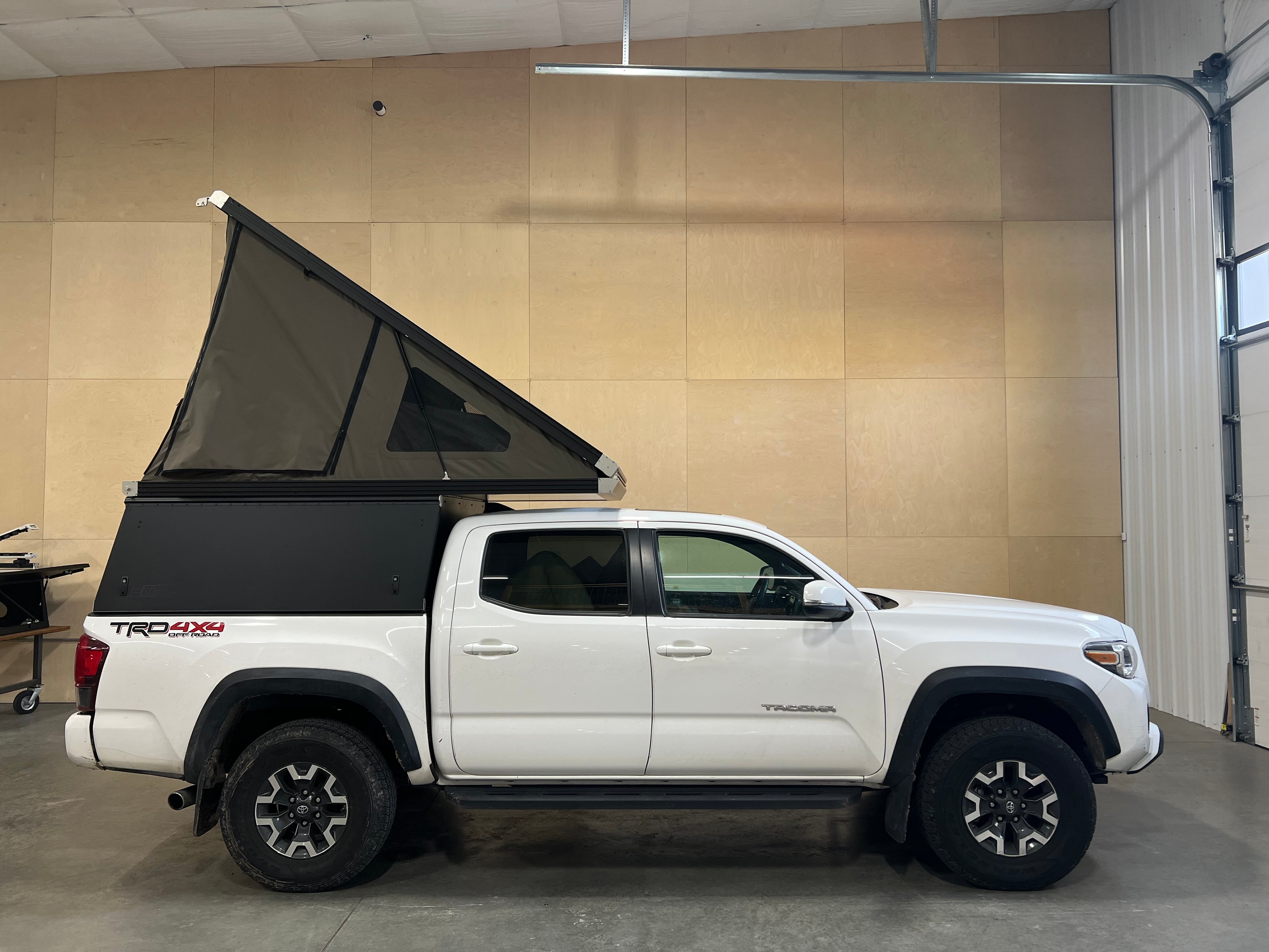 This 2019 Toyota Tacoma is outfitted with a GFC Platform Camper with Black panels. Check out more build specs below.