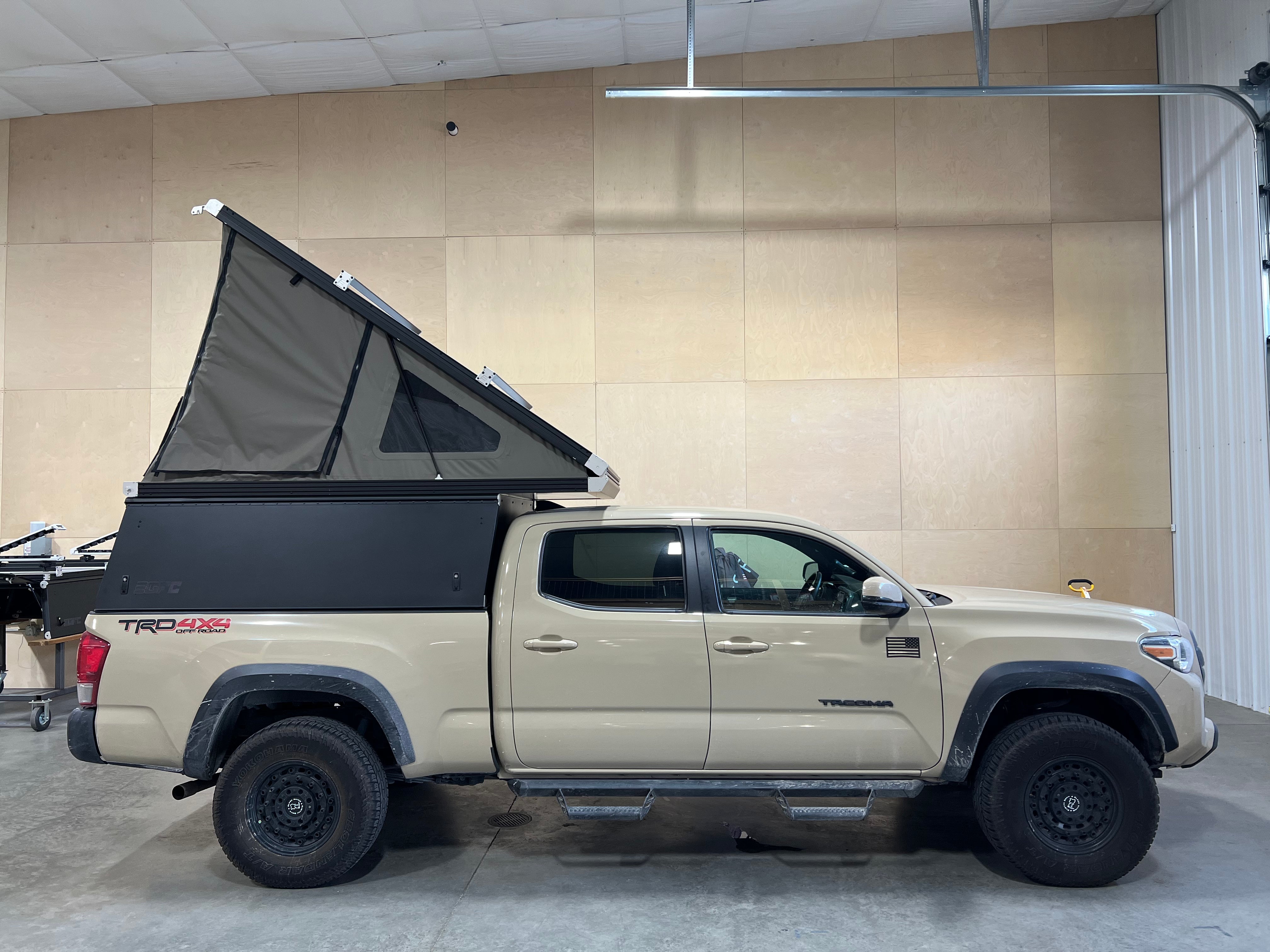 This Toyota Tacoma is outfitted with a GFC Platform Camper with Black panels. Check out more build specs below.