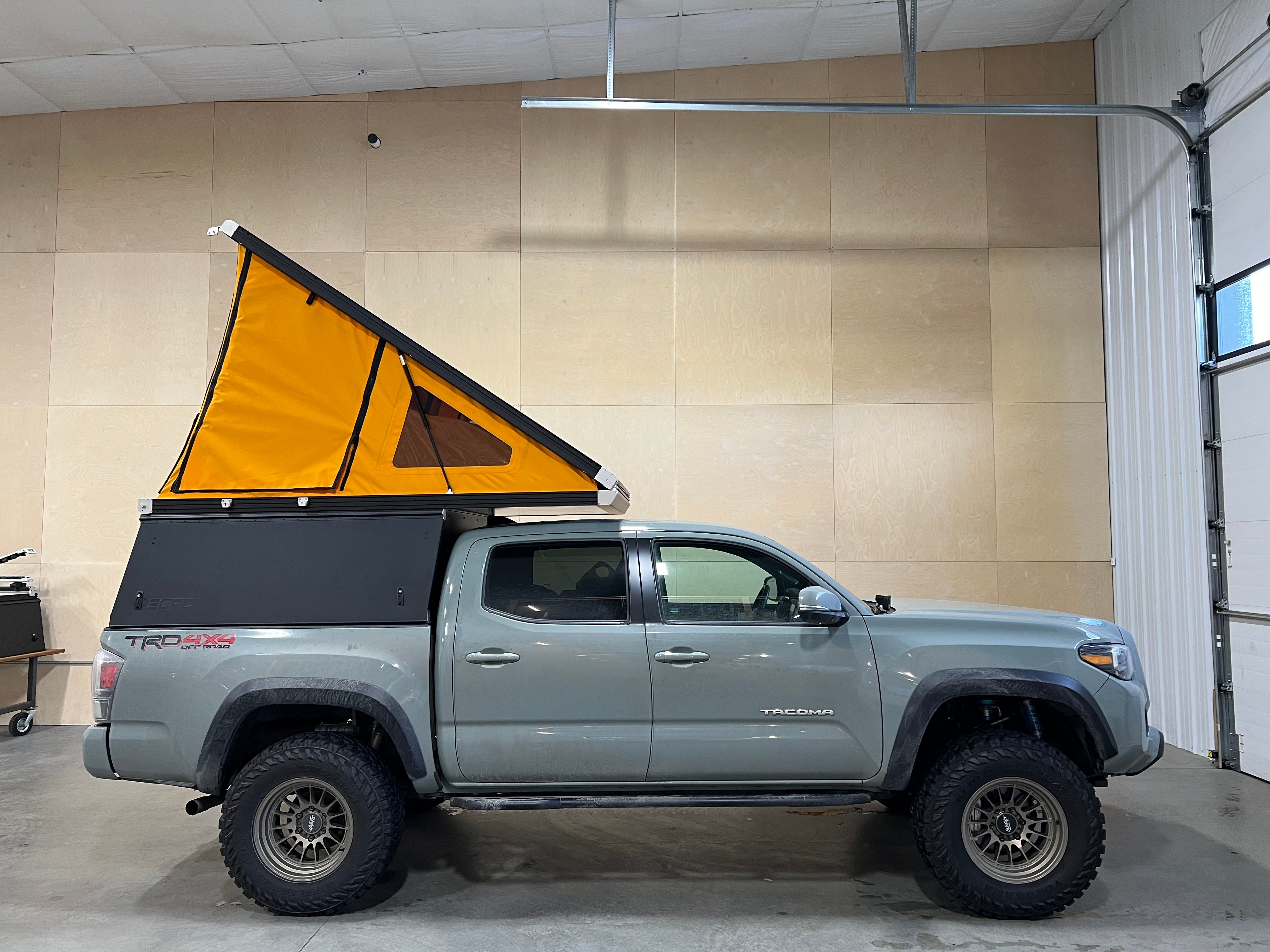 This 2022 Toyota Tacoma is outfitted with a GFC Platform Camper with Black panels. Check out more build specs below.