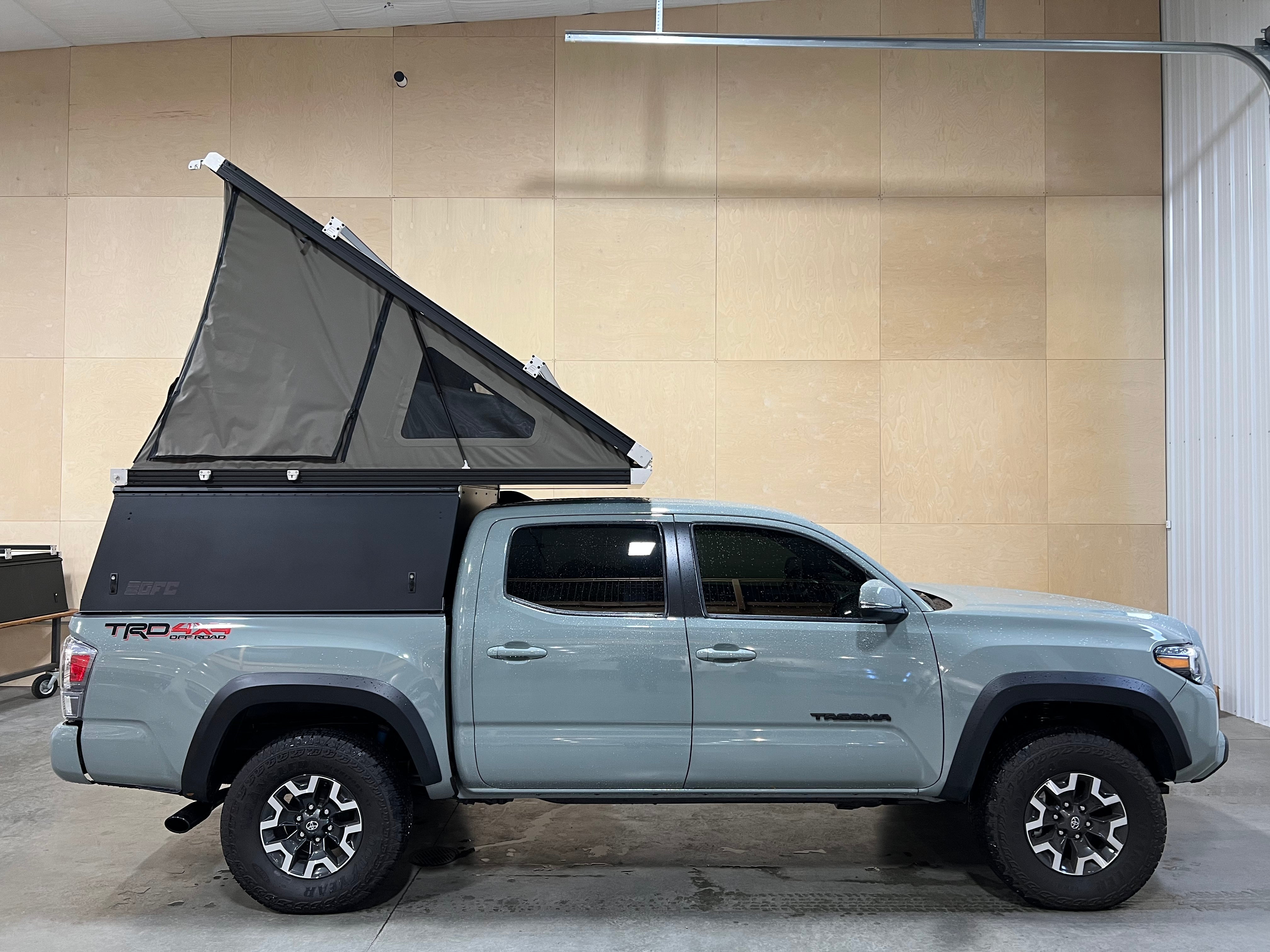 This 2022 Toyota Tacoma is outfitted with a GFC Platform Camper with Black panels. Check out more build specs below.