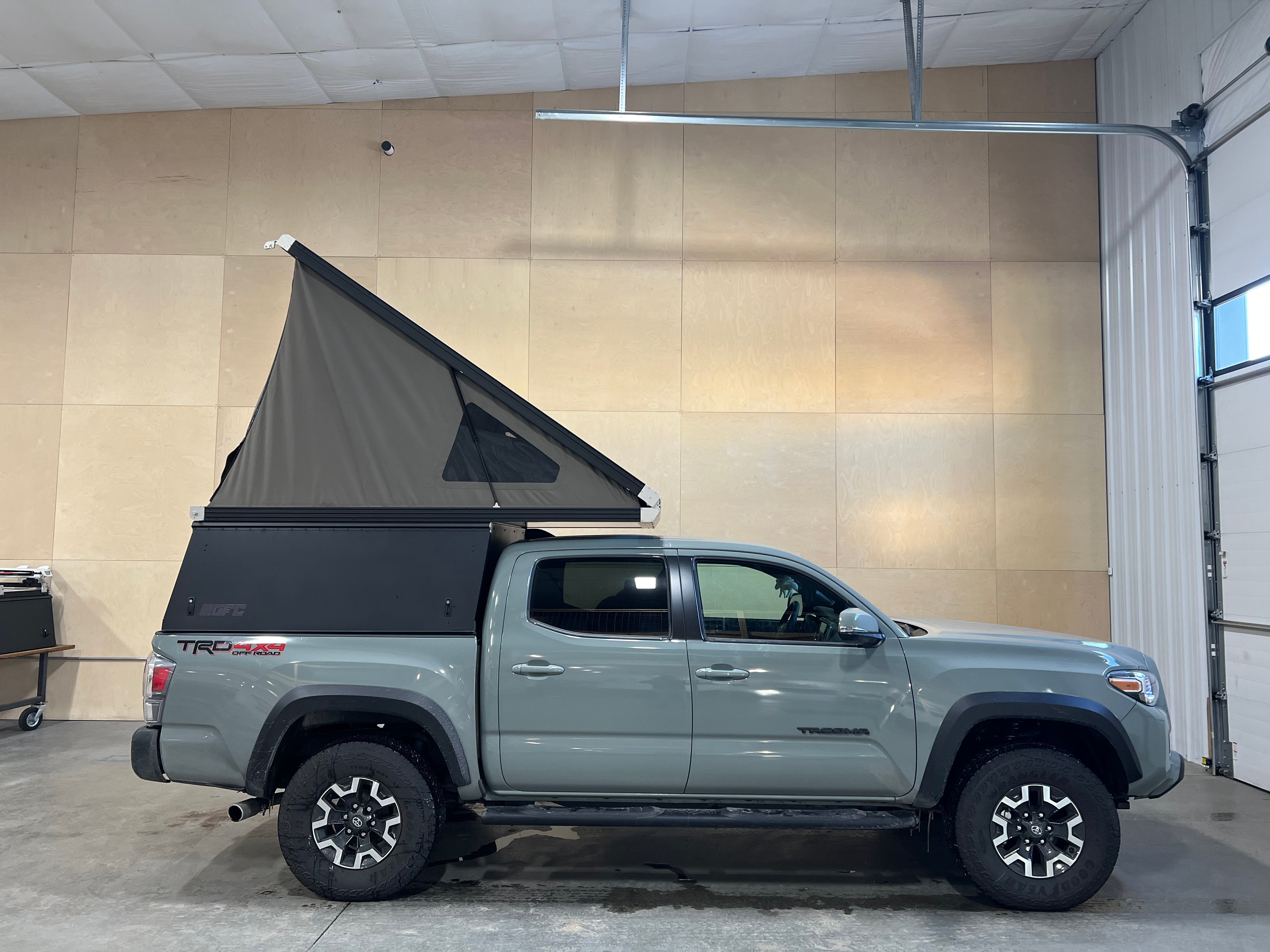 This 2022 Toyota Tacoma is outfitted with a GFC Platform Camper with Black panels. Check out more build specs below.