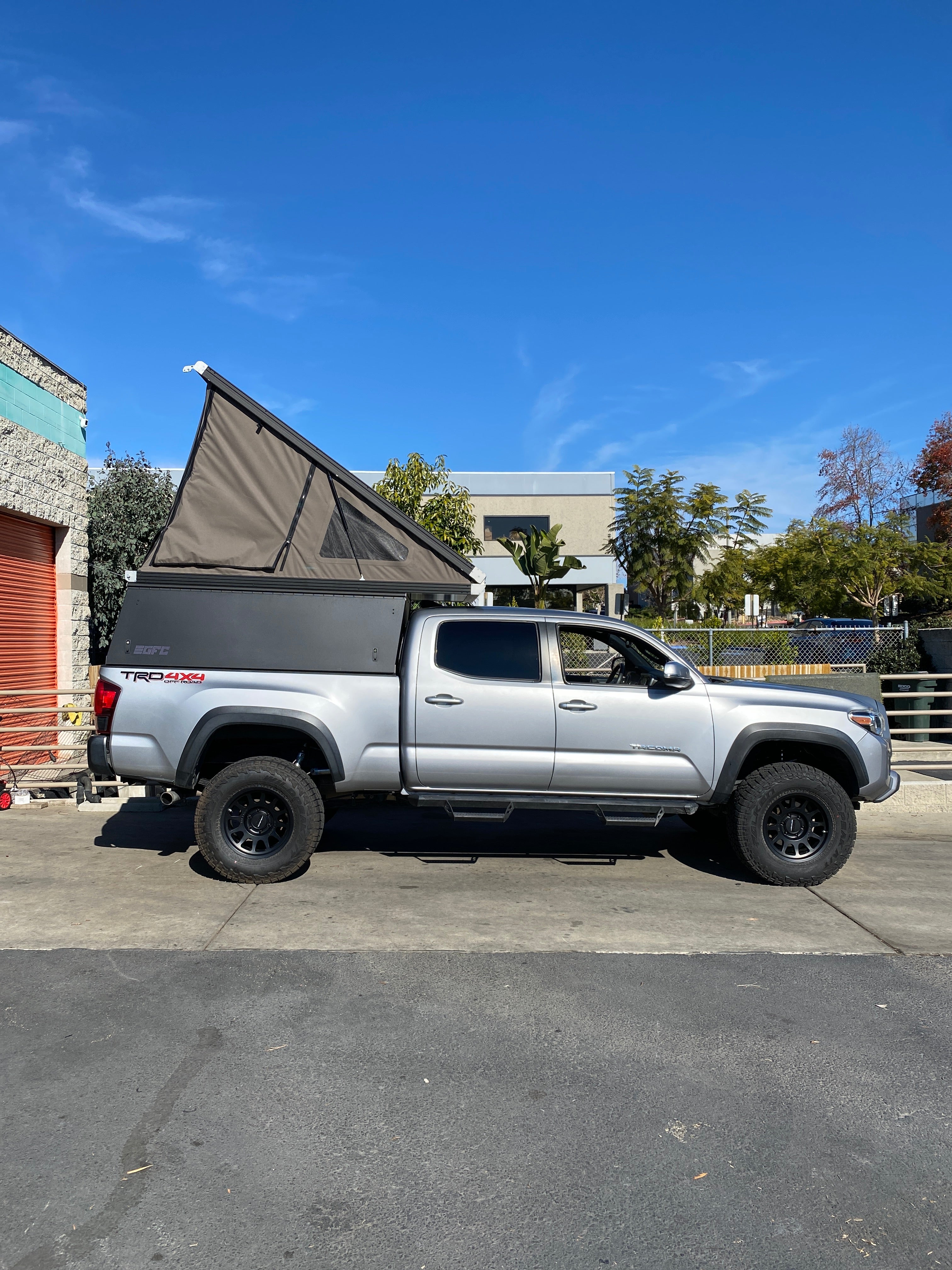 This 2018 Toyota Tacoma is outfitted with a GFC Platform Camper with Black panels. Check out more build specs below.