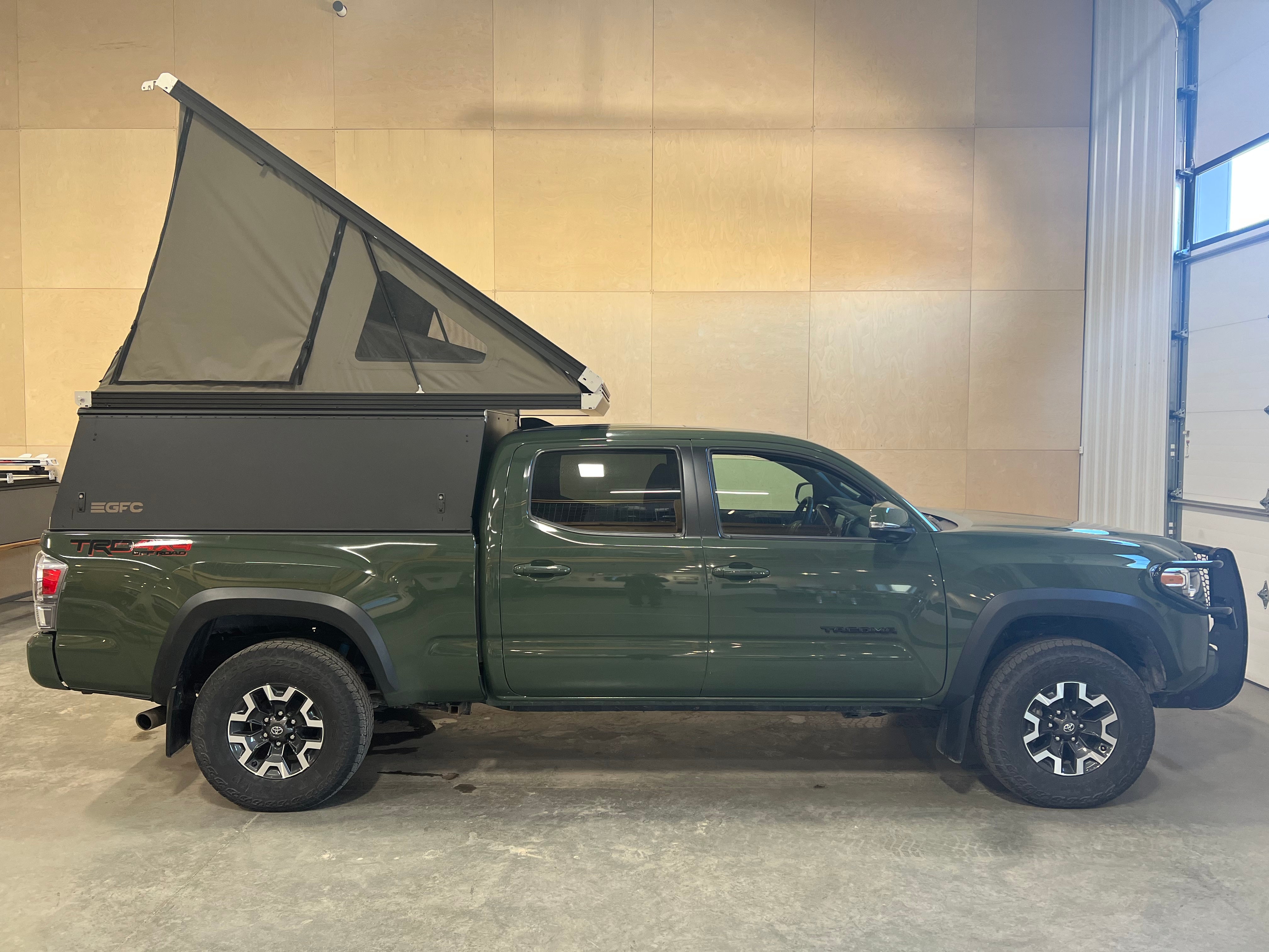 This 2021 Toyota Tacoma is outfitted with a GFC Platform Camper with Black panels. Check out more build specs below.
