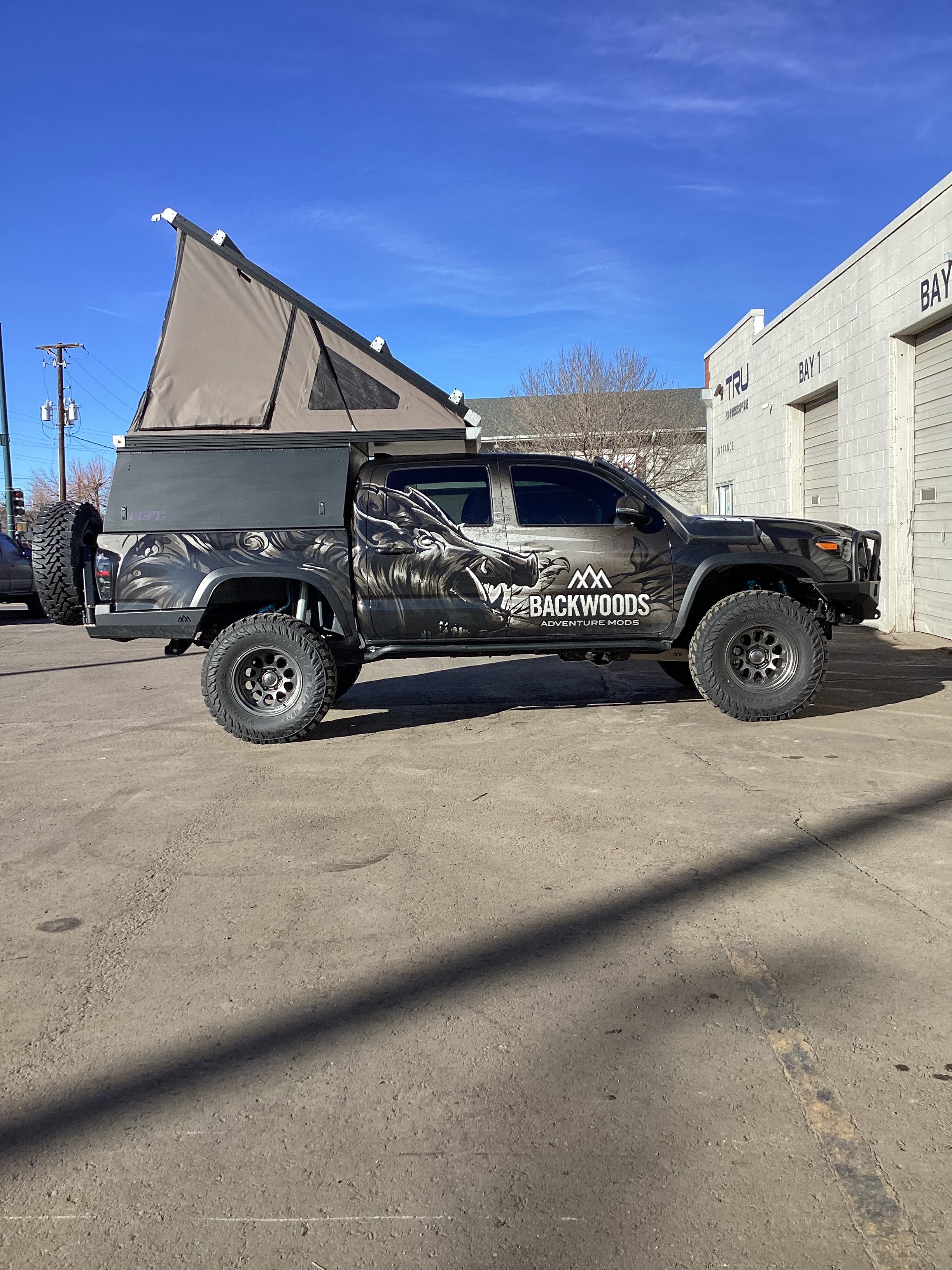 This 2022 Toyota Tacoma is outfitted with a GFC Platform Camper with Black panels. Check out more build specs below.