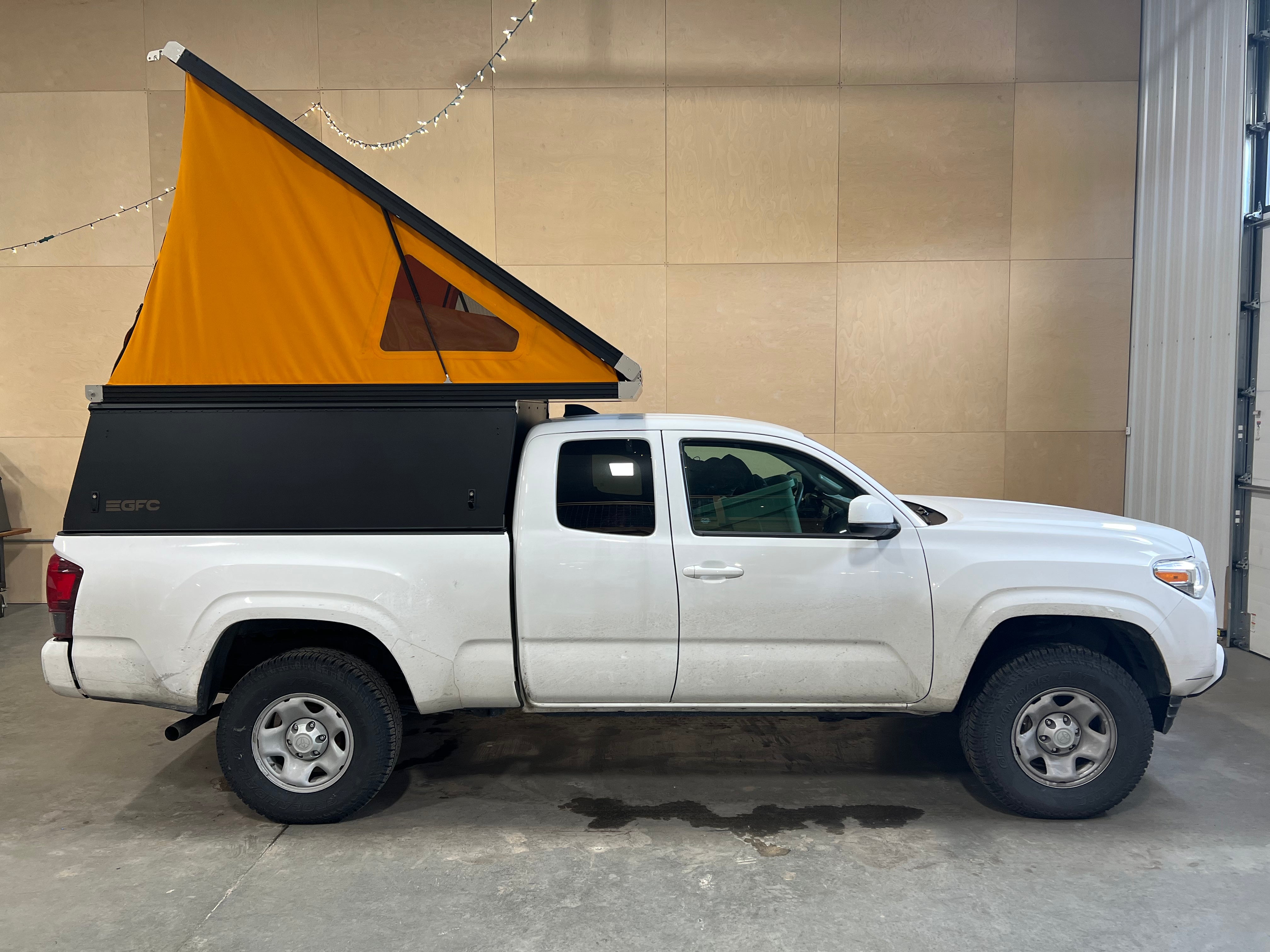 This 2020 Toyota Tacoma is outfitted with a GFC Platform Camper with Black panels. Check out more build specs below.
