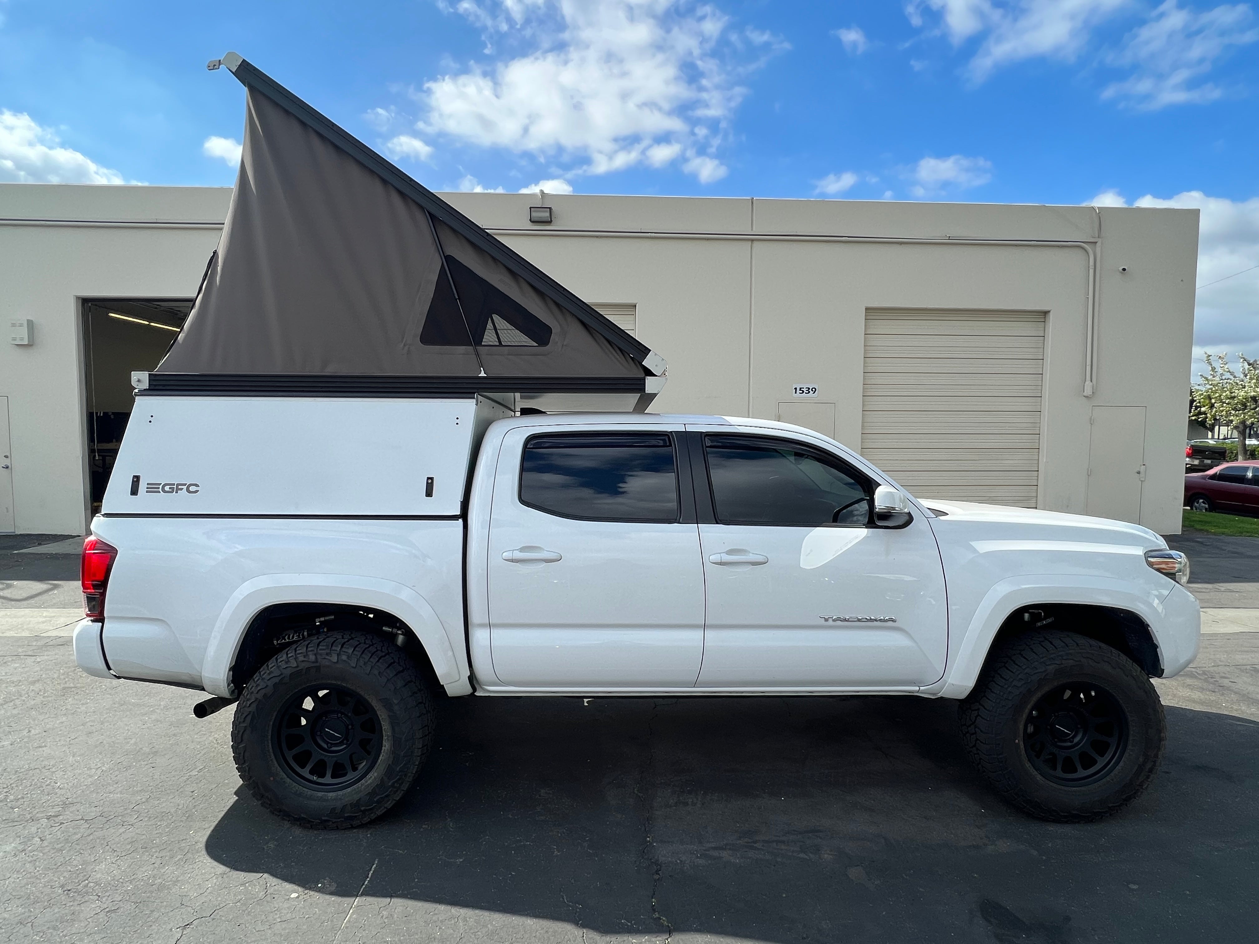 This 2019 Toyota Tacoma is outfitted with a GFC Platform Camper with White panels. Check out more build specs below.