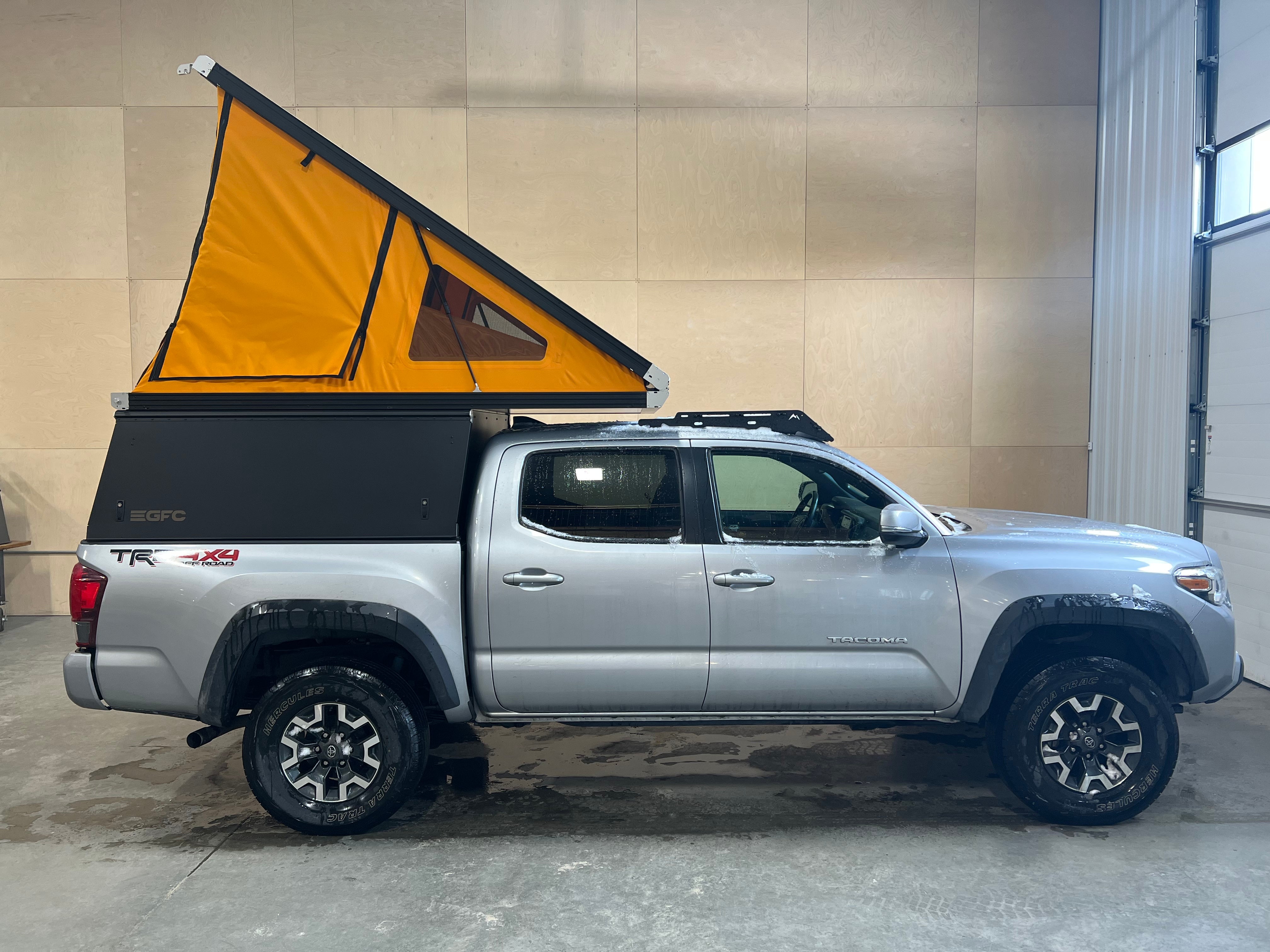 This 2019 Toyota Tacoma is outfitted with a GFC Platform Camper with Black panels. Check out more build specs below.