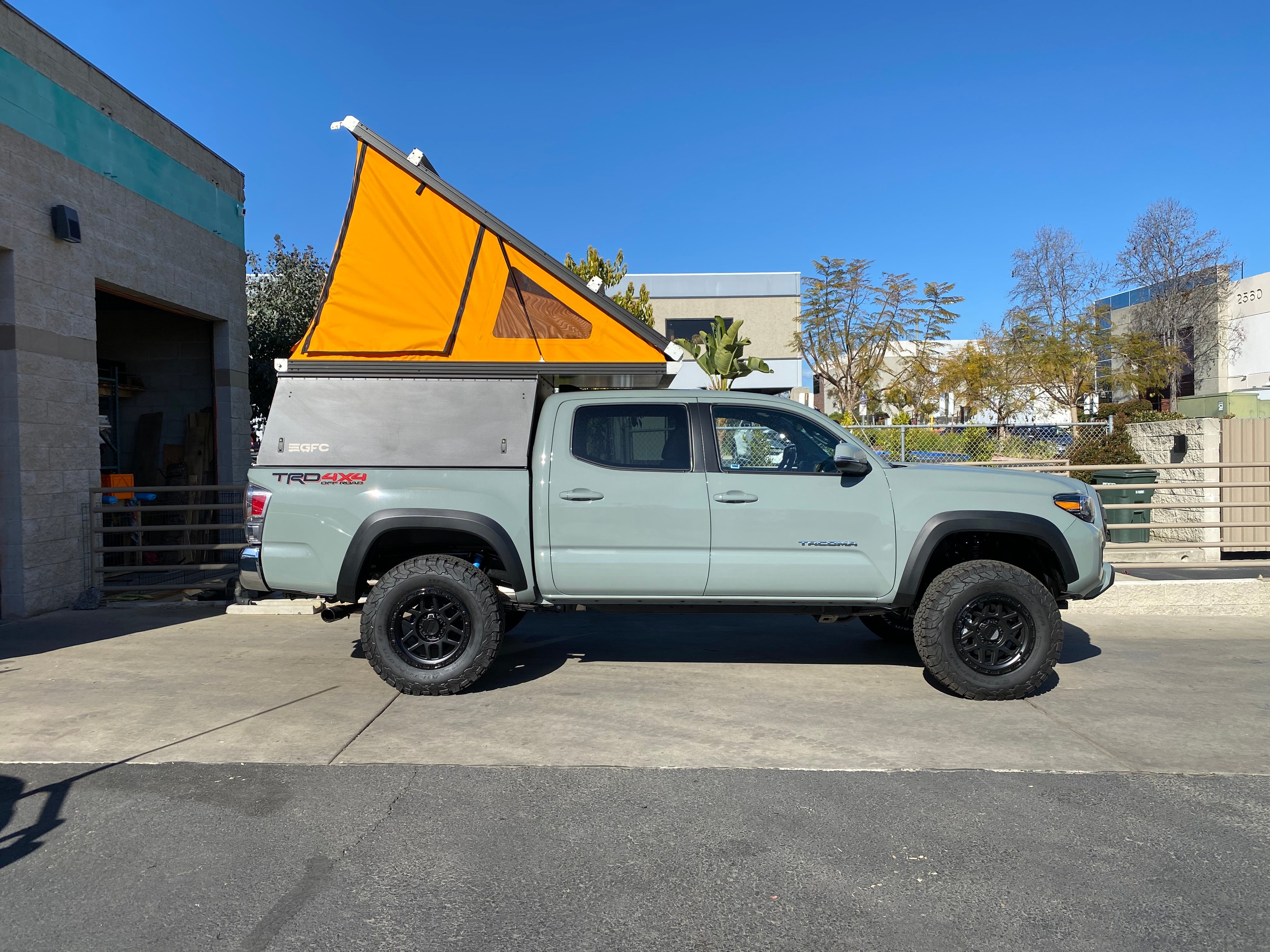 This 2023 Toyota Tacoma is outfitted with a GFC Platform Camper with Black panels. Check out more build specs below.