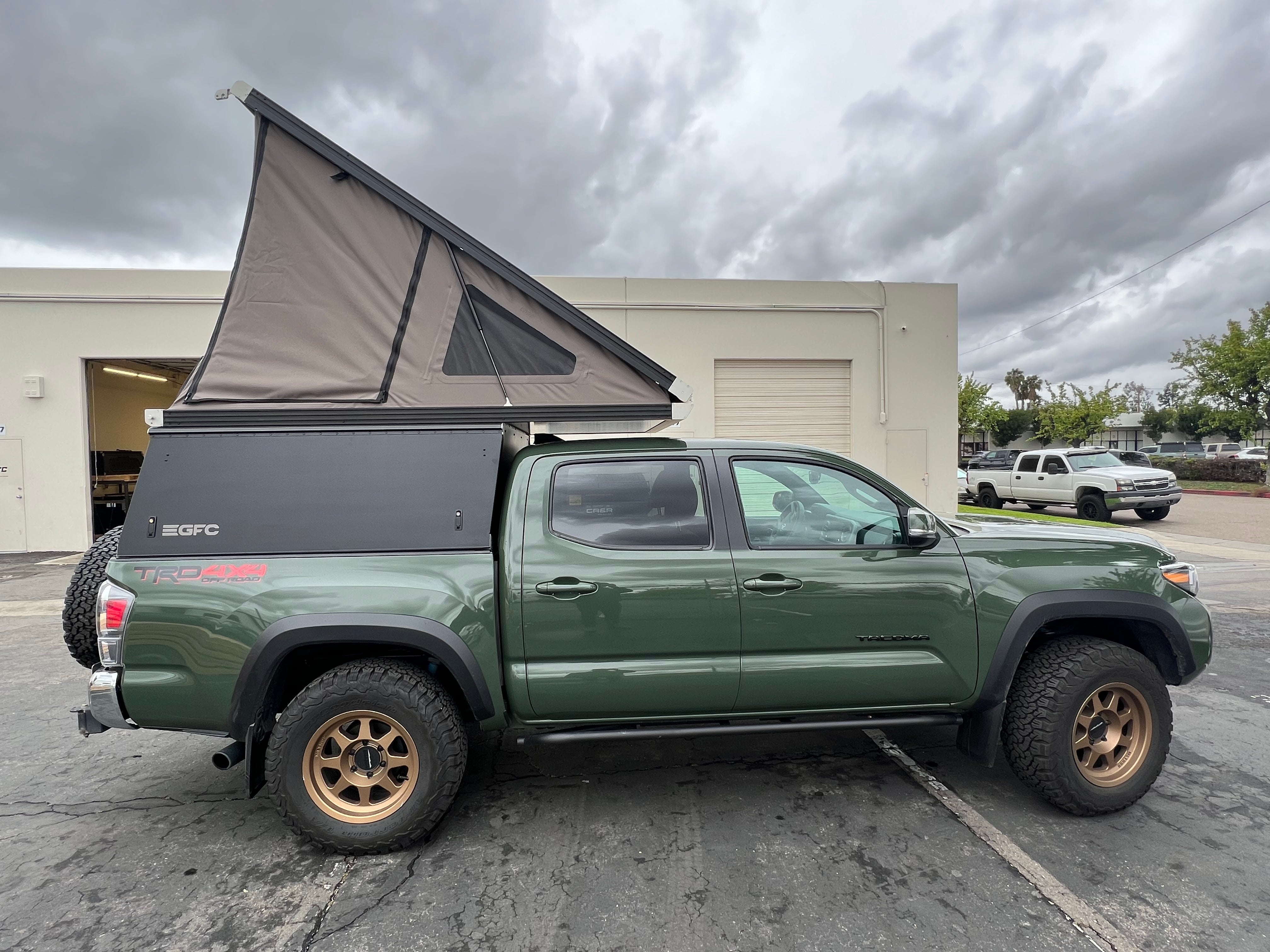 This 2021 Toyota Tacoma is outfitted with a GFC Platform Camper with Black panels. Check out more build specs below.