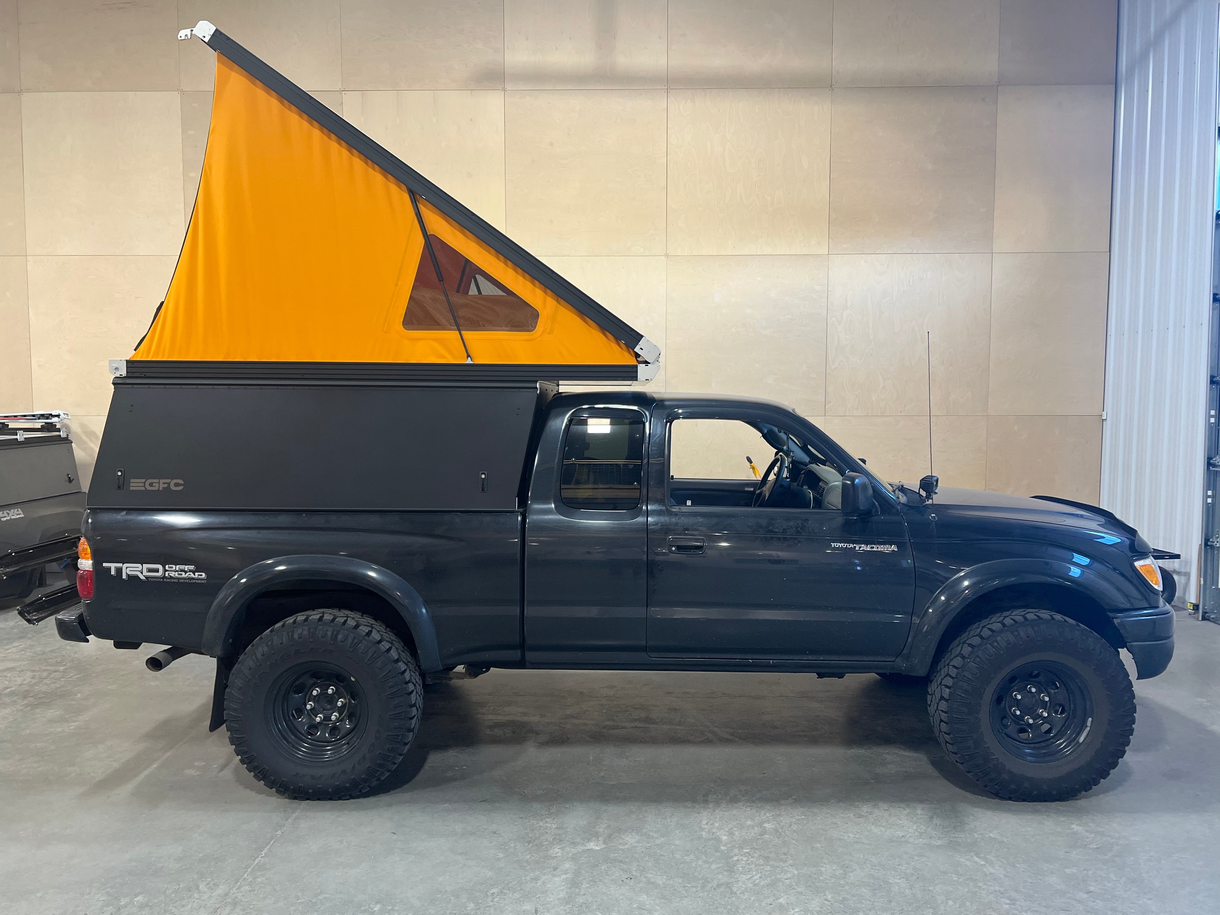 This 2004 Toyota Tacoma is outfitted with a GFC Platform Camper with Black panels. Check out more build specs below.