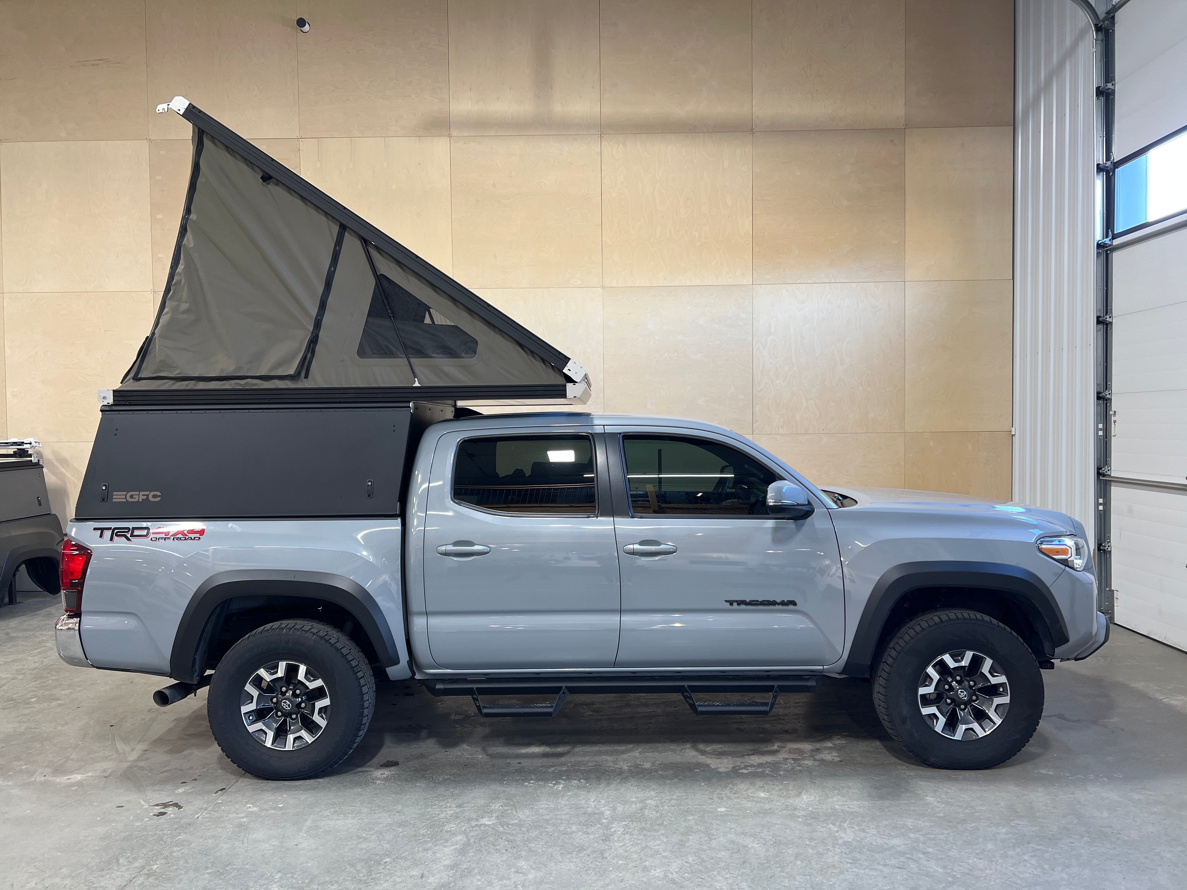This 2019 Toyota Tacoma is outfitted with a GFC Platform Camper with Black panels. Check out more build specs below.