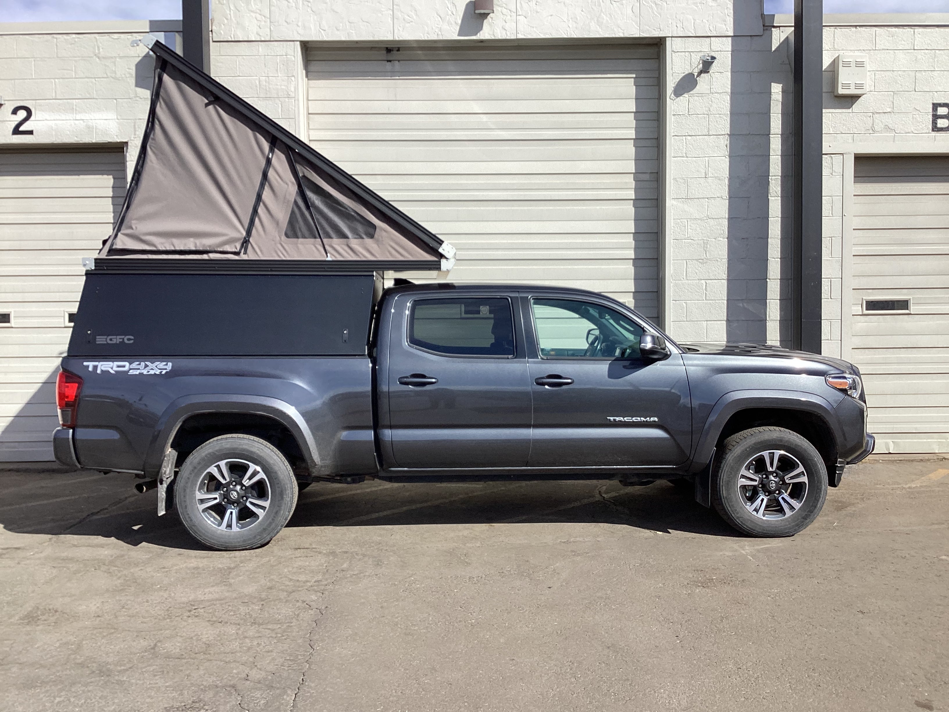 This 2018 Toyota Tacoma is outfitted with a GFC Platform Camper with Black panels. Check out more build specs below.