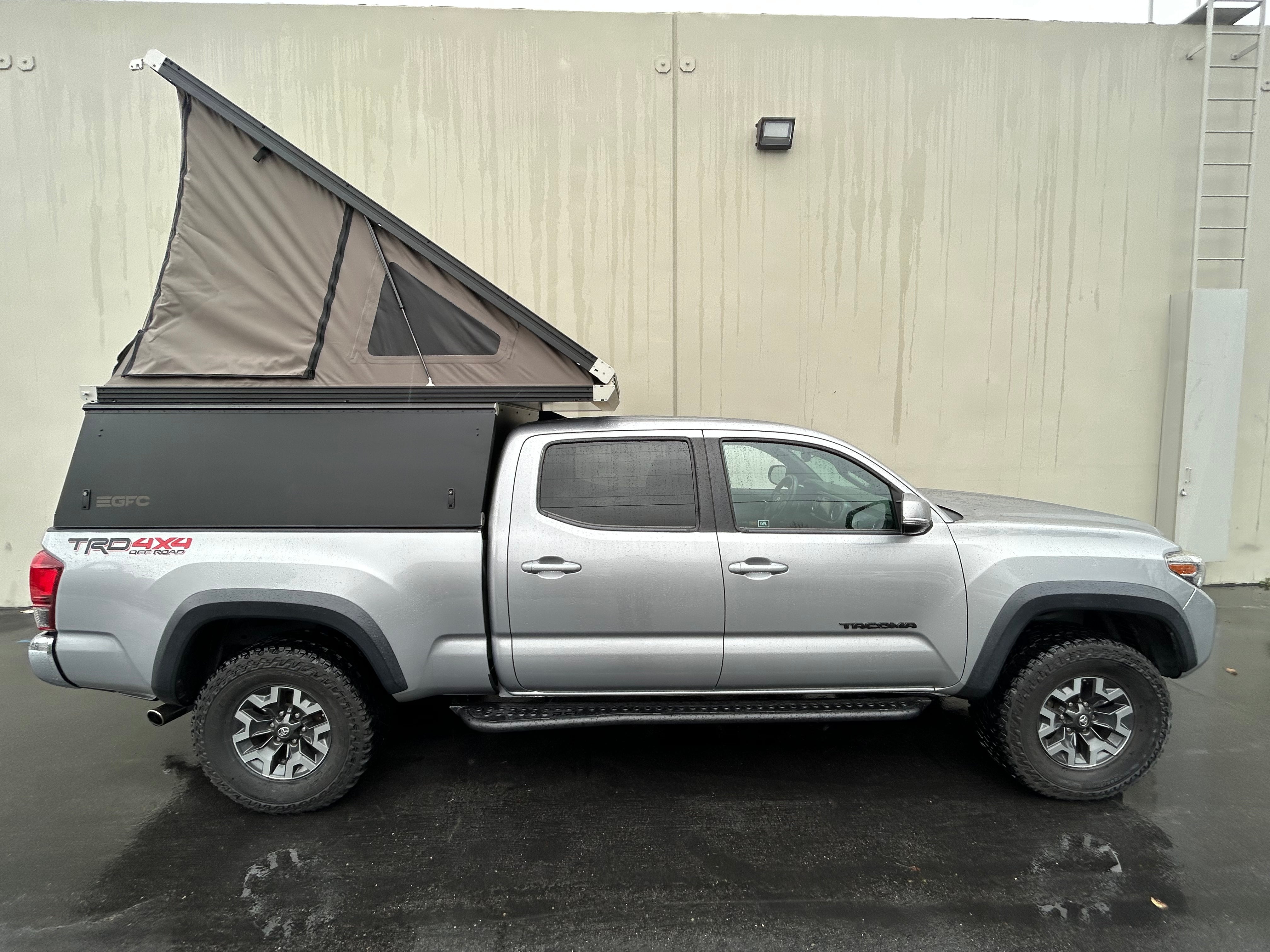 This 2017 Toyota Tacoma is outfitted with a GFC Platform Camper with Black panels. Check out more build specs below.