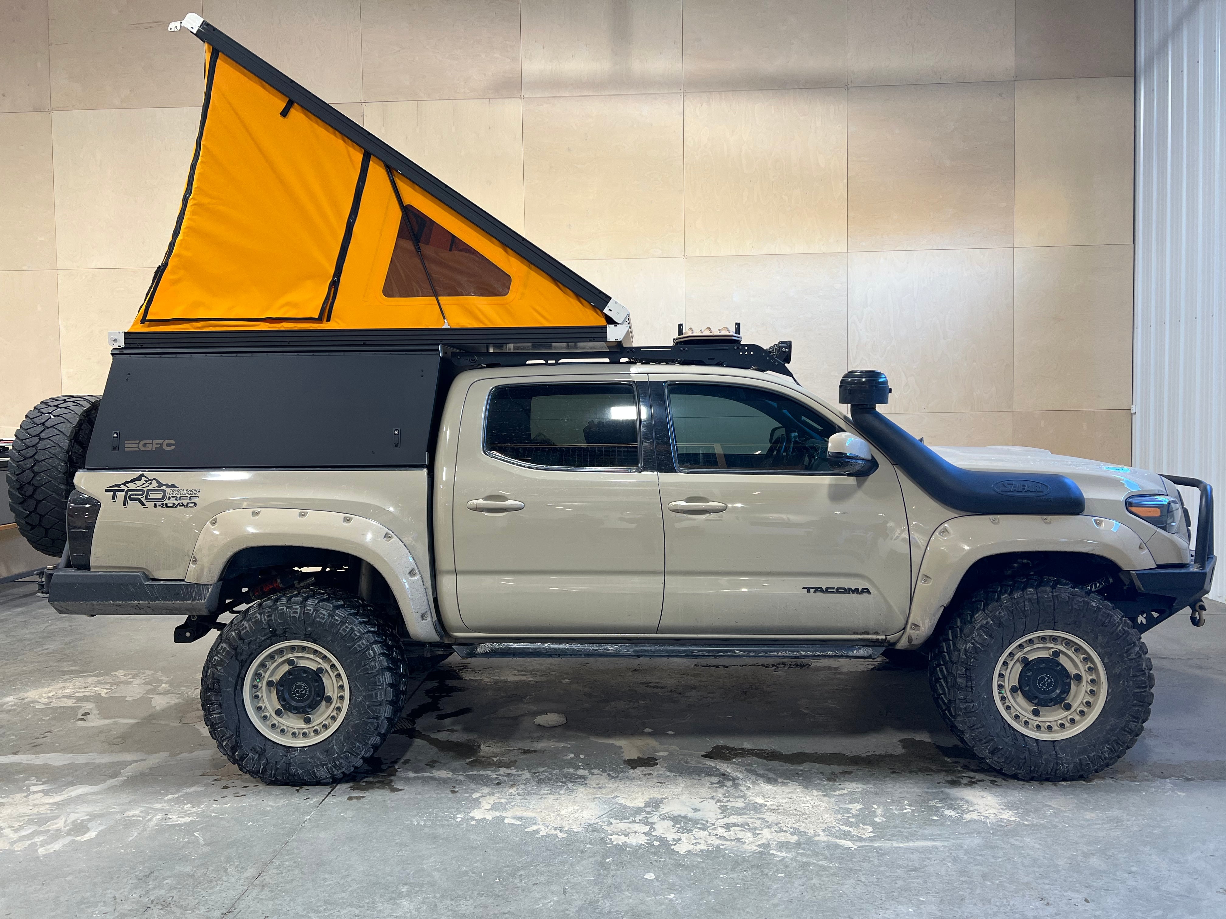 This 2019 Toyota Tacoma is outfitted with a GFC Platform Camper with Black panels. Check out more build specs below.