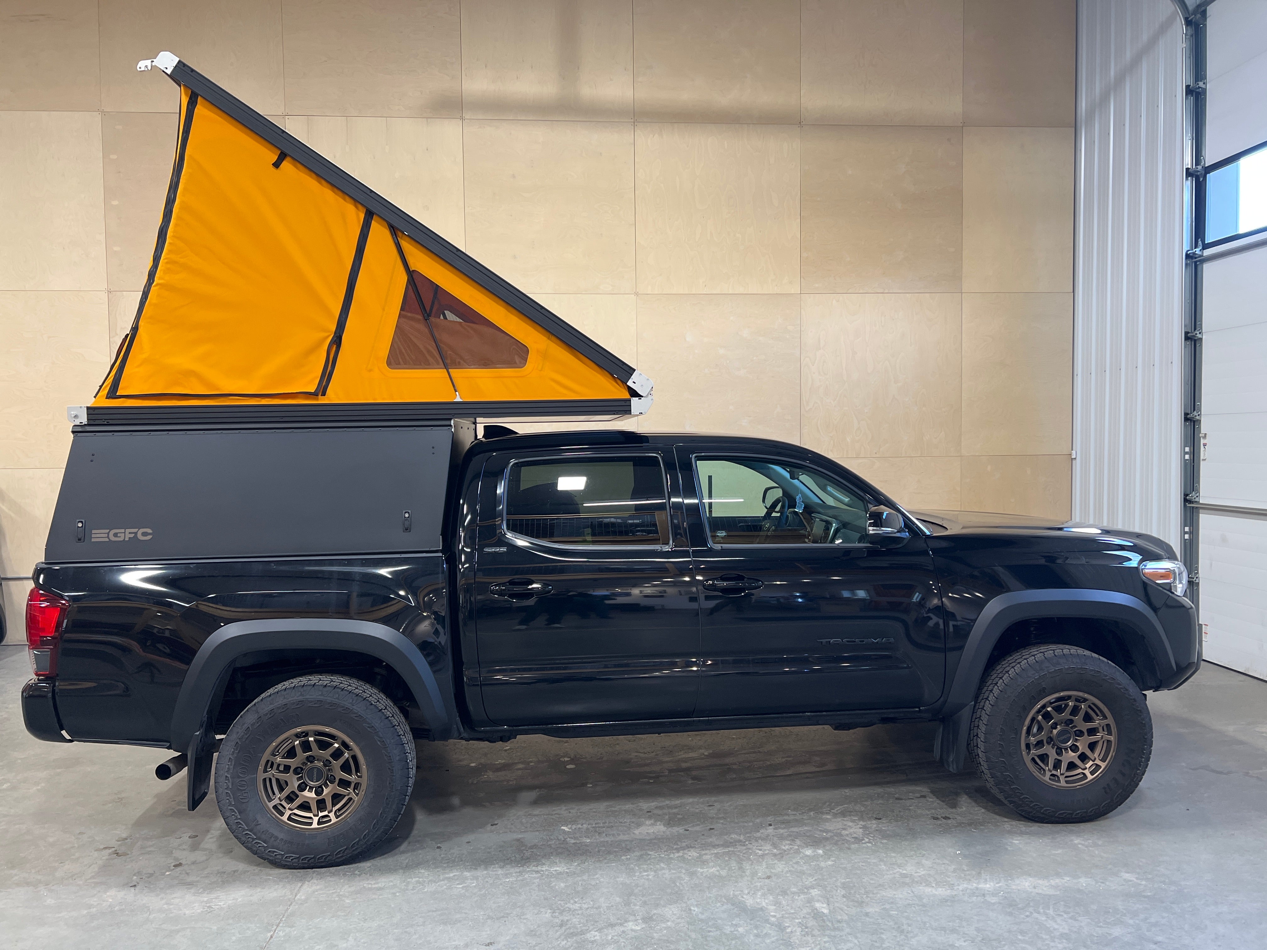 This 2023 Toyota Tacoma is outfitted with a GFC Platform Camper with Black panels. Check out more build specs below.