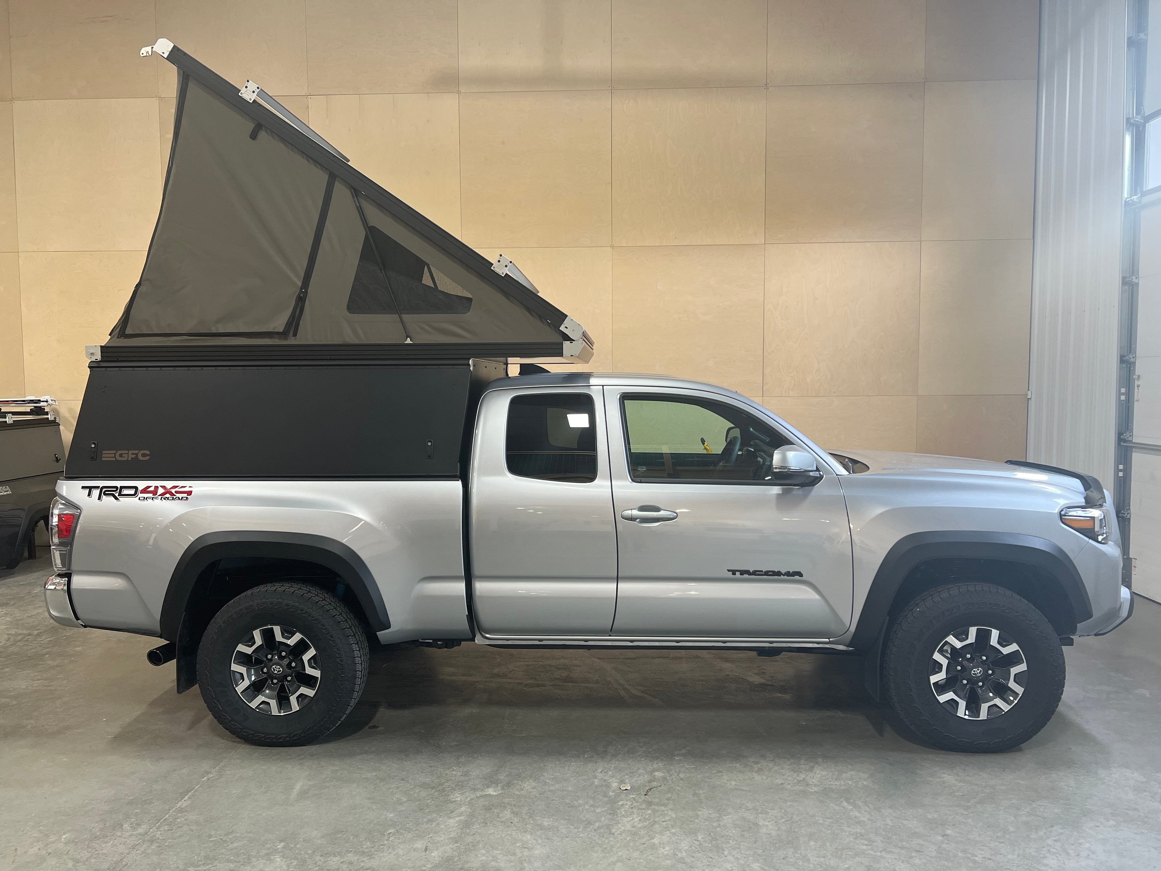This 2022 Toyota Tacoma is outfitted with a GFC Platform Camper with Black panels. Check out more build specs below.