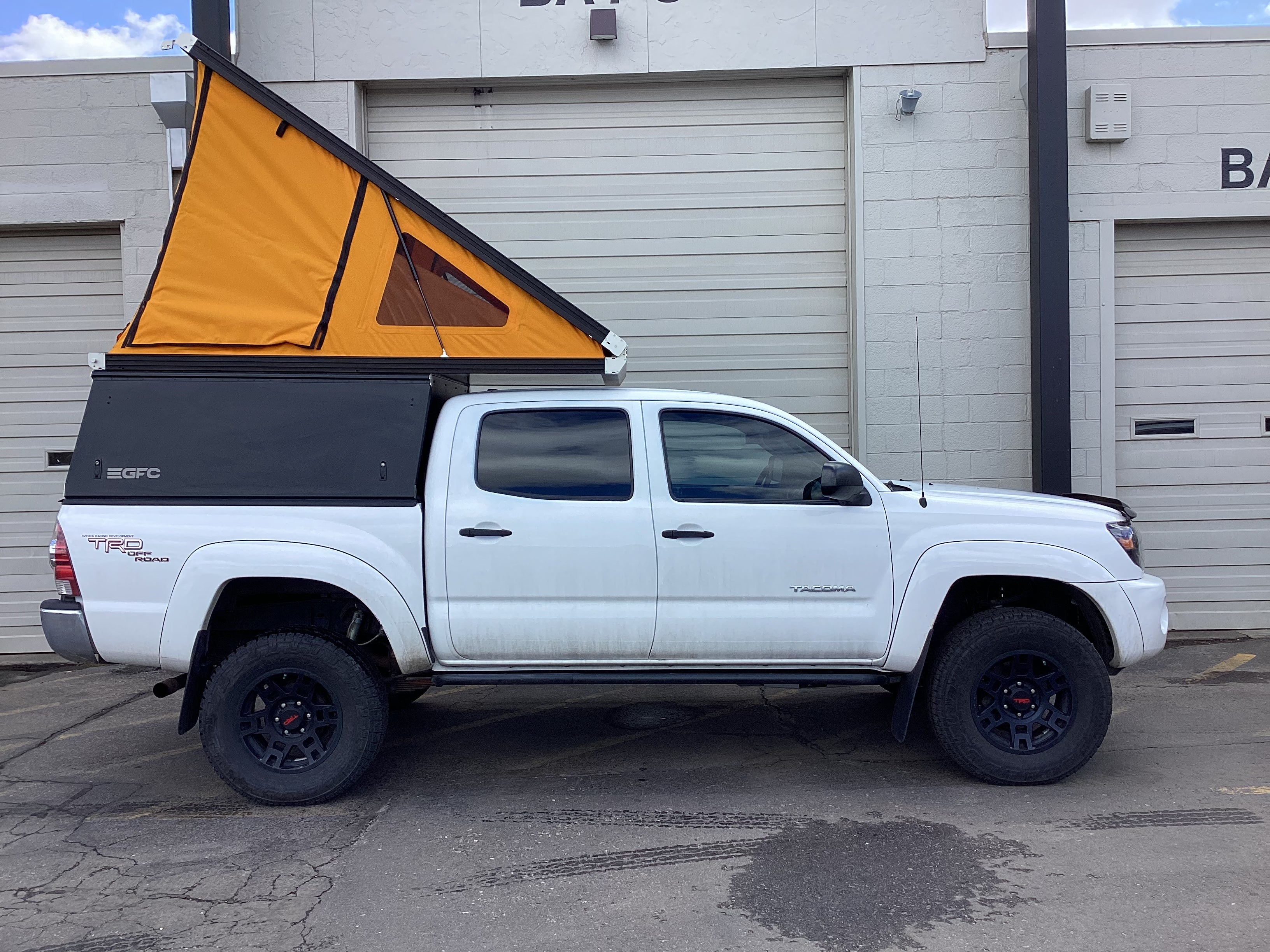 Product: Platform Camper Panel Color: Black GFC Options: Windows, Side Door Year: 2011 Make: Toyota Model: Tacoma Cab/Bed: Quad Cab 5 foot Truck Color White Wheels: TRD Suspension: Bilstein Tire: Bridgestone Dueler AT REVO3 265/70R17 Mods: All I need is a GFC Instagram Handle: Install Date: 2023-04-28 Location: Colorado
