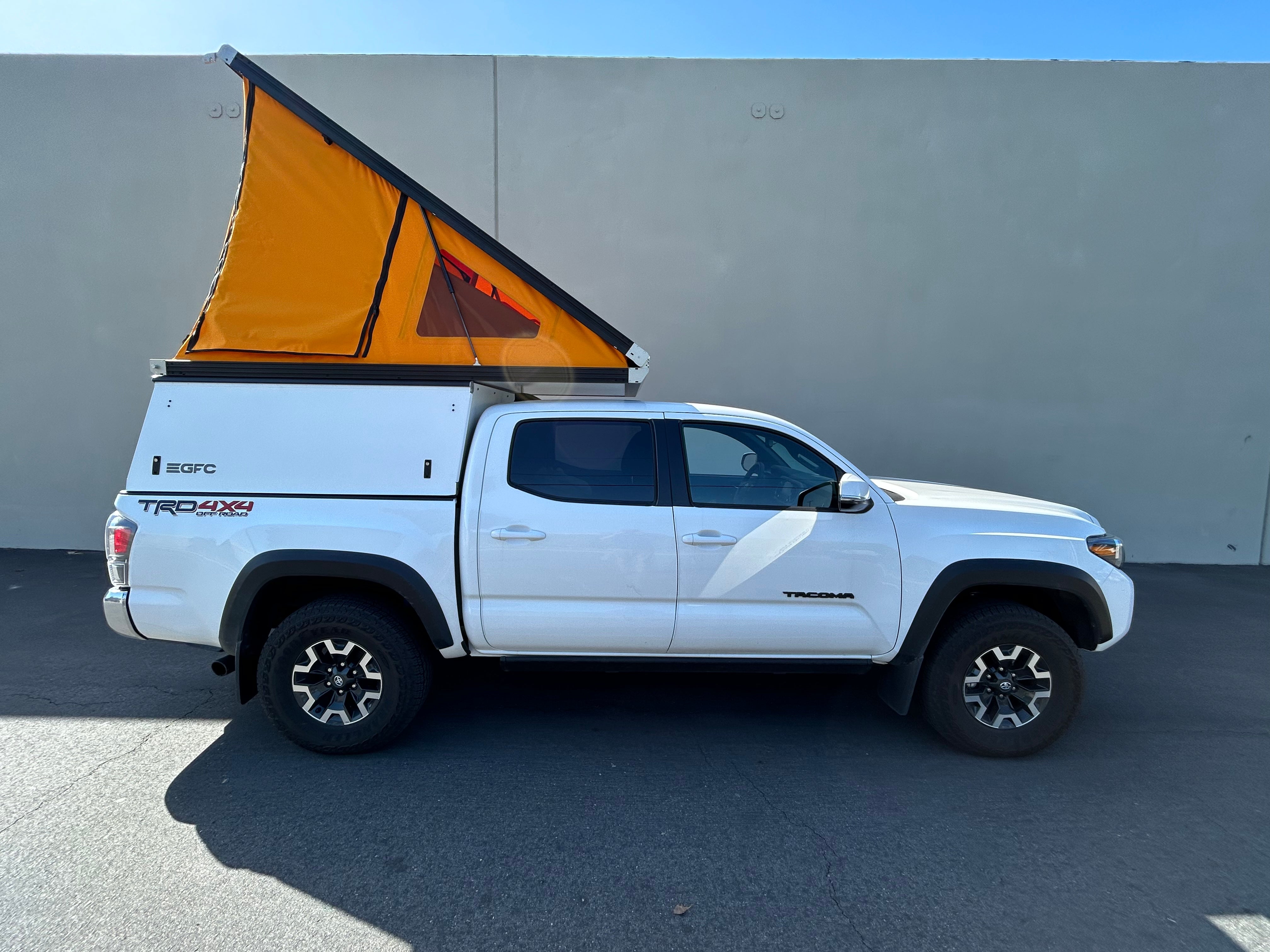 This 2021 Toyota Tacoma is outfitted with a GFC Platform Camper with White panels. Check out more build specs below.